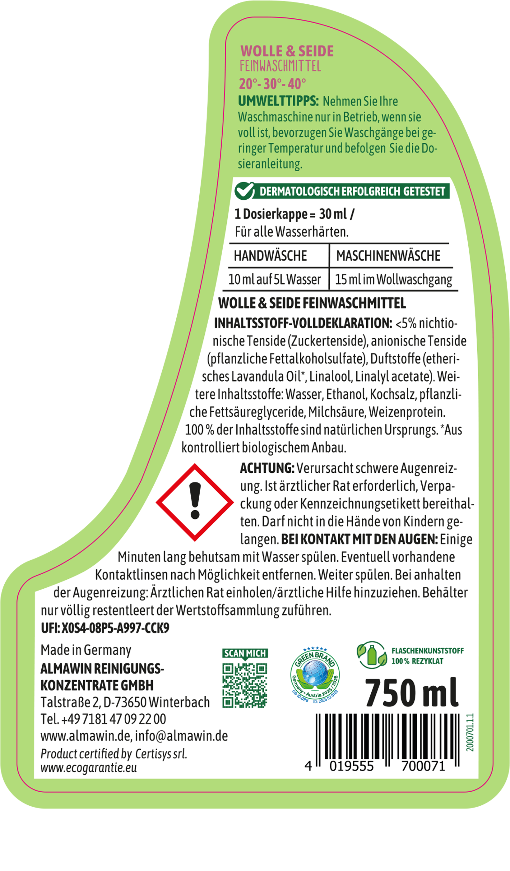 | Hersteller: | AlmaWin Reinigungskonzentrate GmbH, Talstraße 2, 73650, Winterbach, Deutschland, info@almawin.de, www.almawin.de |