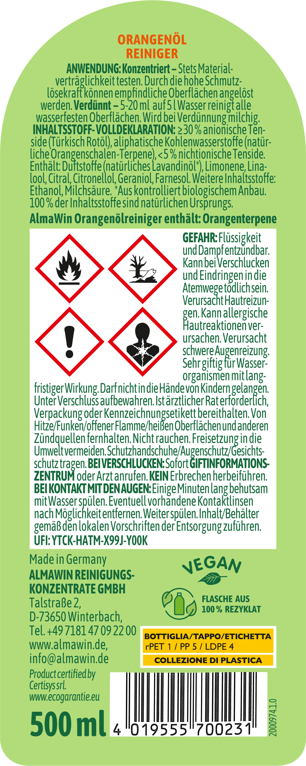 | Hersteller: | AlmaWin Reinigungskonzentrate GmbH, Talstraße 2, 73650, Winterbach, Deutschland, info@almawin.de, www.almawin.de |