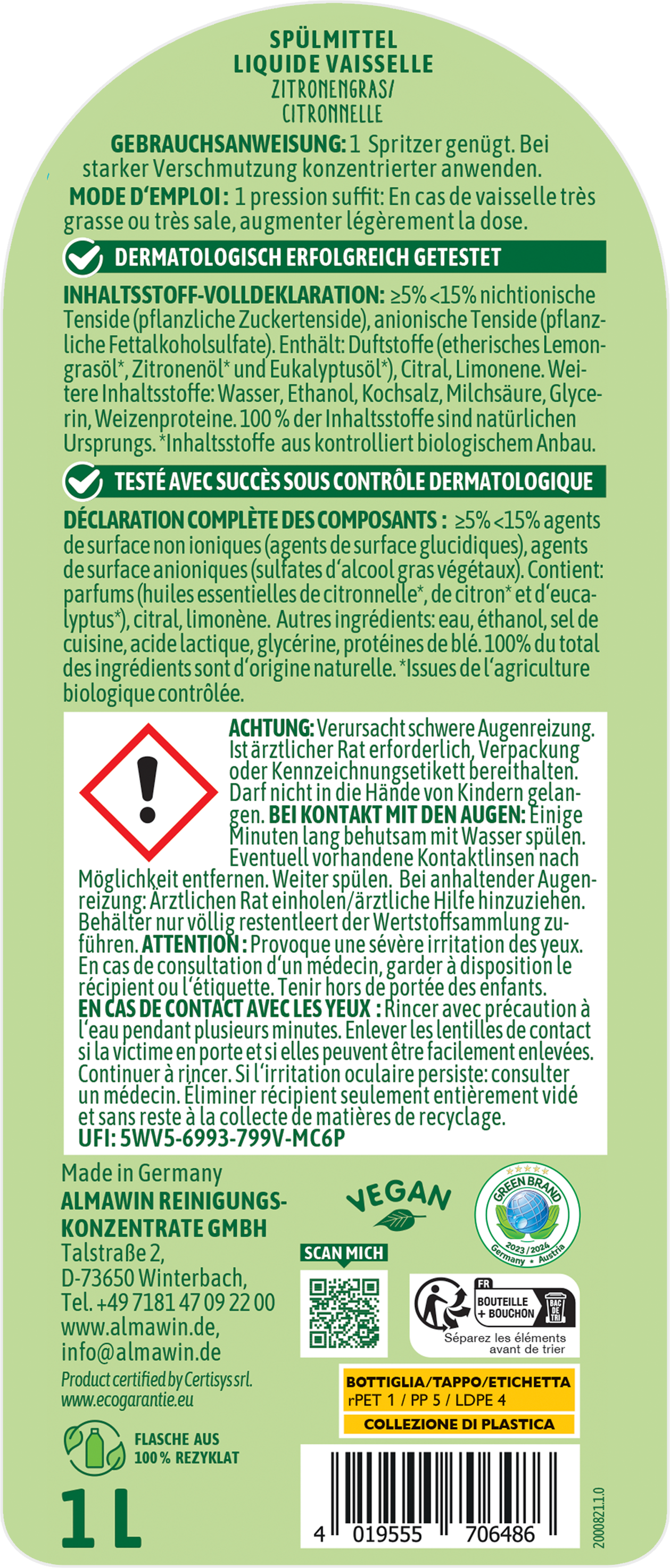 | Hersteller: | AlmaWin Reinigungskonzentrate GmbH, Talstraße 2, 73650, Winterbach, Deutschland, info@almawin.de, www.almawin.de |