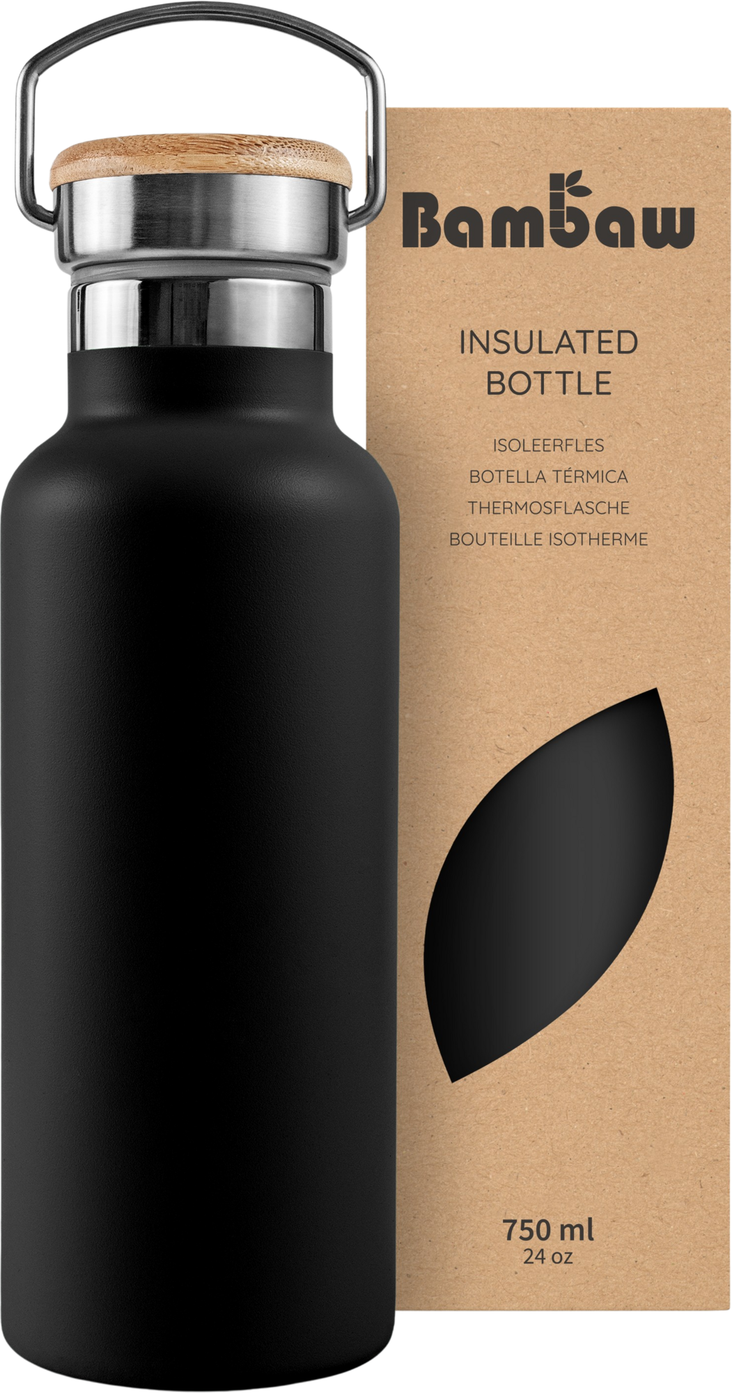 Bambaw Thermosflasche aus Edelstahl 750 ml, Jet Black
