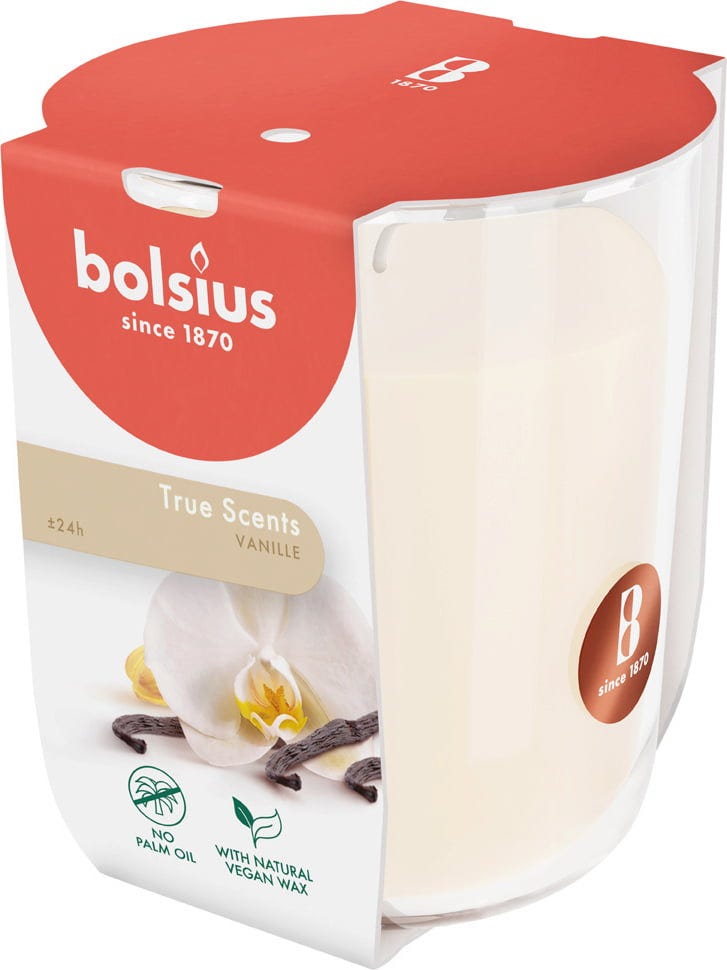 Die Bolsius True Scents Duftkerze im Glas sorgt bis zu 25 Stunden lang für eine optimale Duftverteilung in deinen Wohnräumen. Dank Freshplex™-Technologie hilft sie sogar beim Neutralisieren von Tabakrauch. Die Kerze besteht zum Teil aus pflanzlichem Wachs und ist frei von Palmöl.