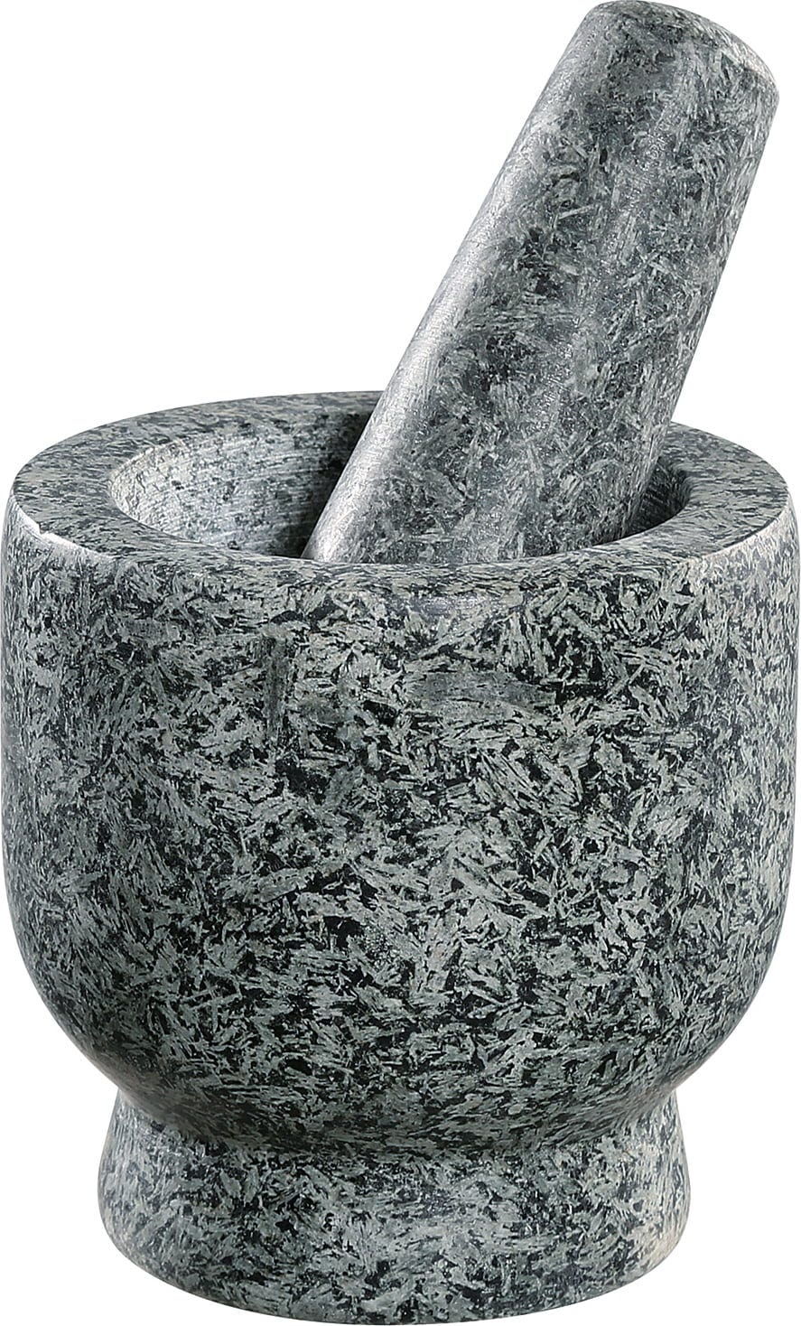 Tipp: Nach dem Gebrauch empfiehlt es sich, den Mörser lediglich mit warmem Wasser und ggf. einer Bürste zu reinigen, um die natürliche Oberfläche des Granits zu schonen.