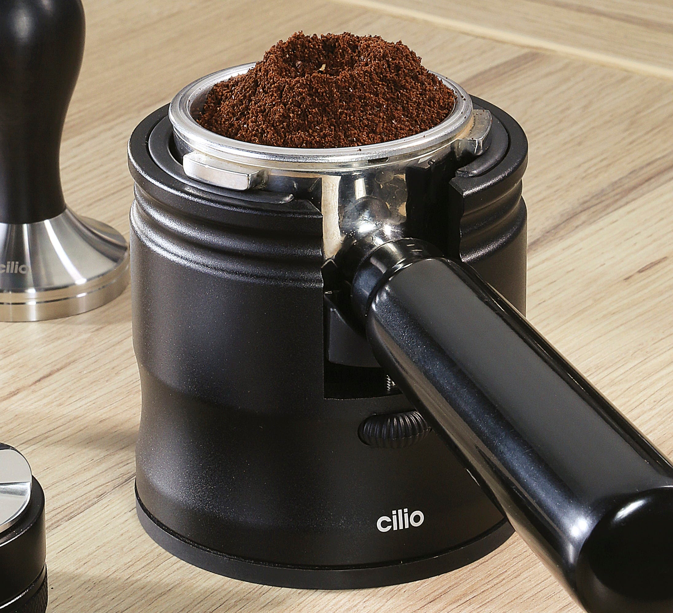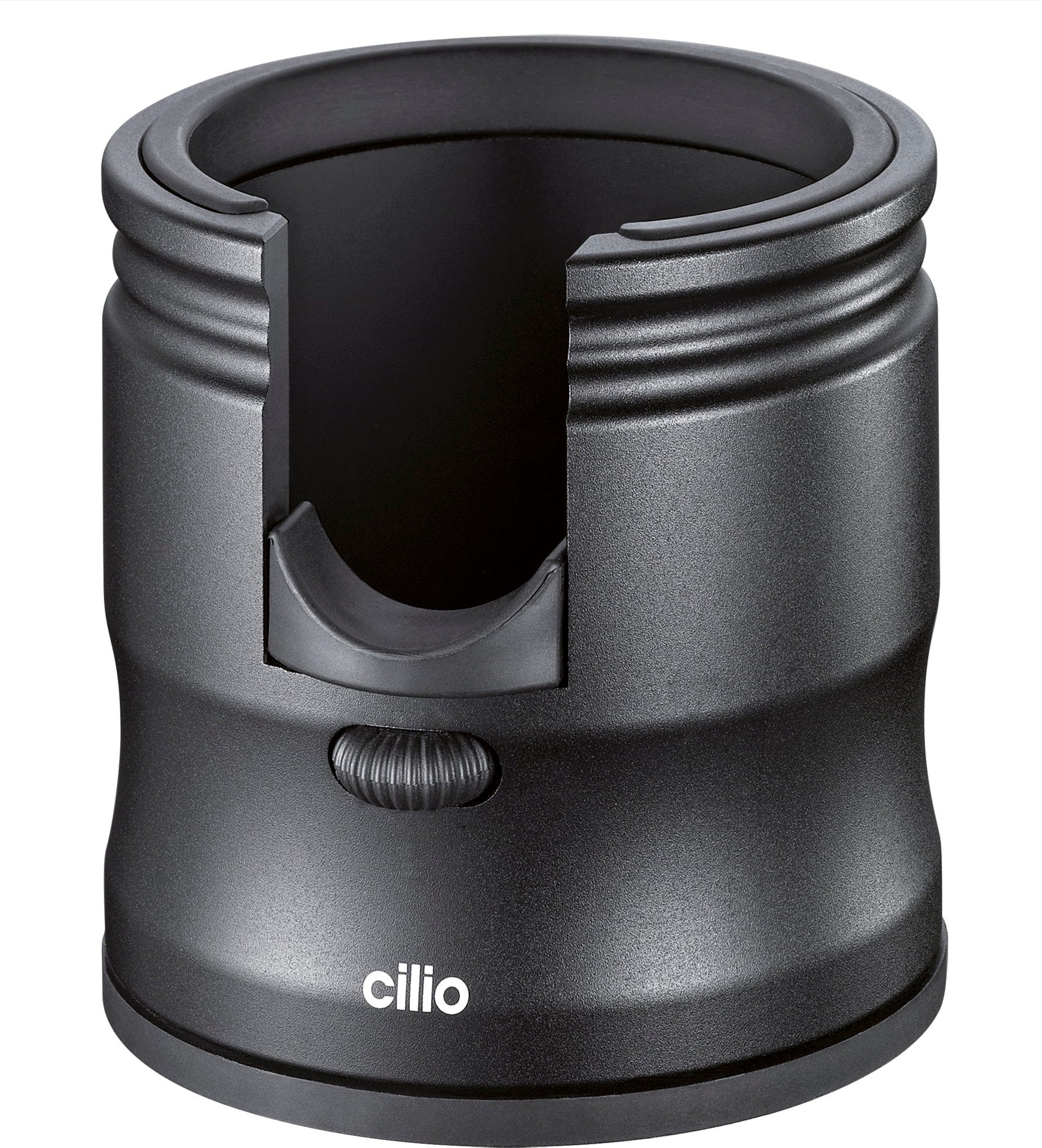 Sorge für eine sichere Basis bei der Espresso-Zubereitung. Die cilio Tamperstation BARISTA ist der ideale Partner für deinen Siebträger. Sie bietet verlässlichen Halt beim Verteilen, Leveln und Tampern, damit nichts verrutscht und beschädigt wird. Die Station wird mit zwei höhenverstellbaren Halterungen geliefert und lässt sich für 51, 54 sowie 58 mm große Siebträger verwenden.