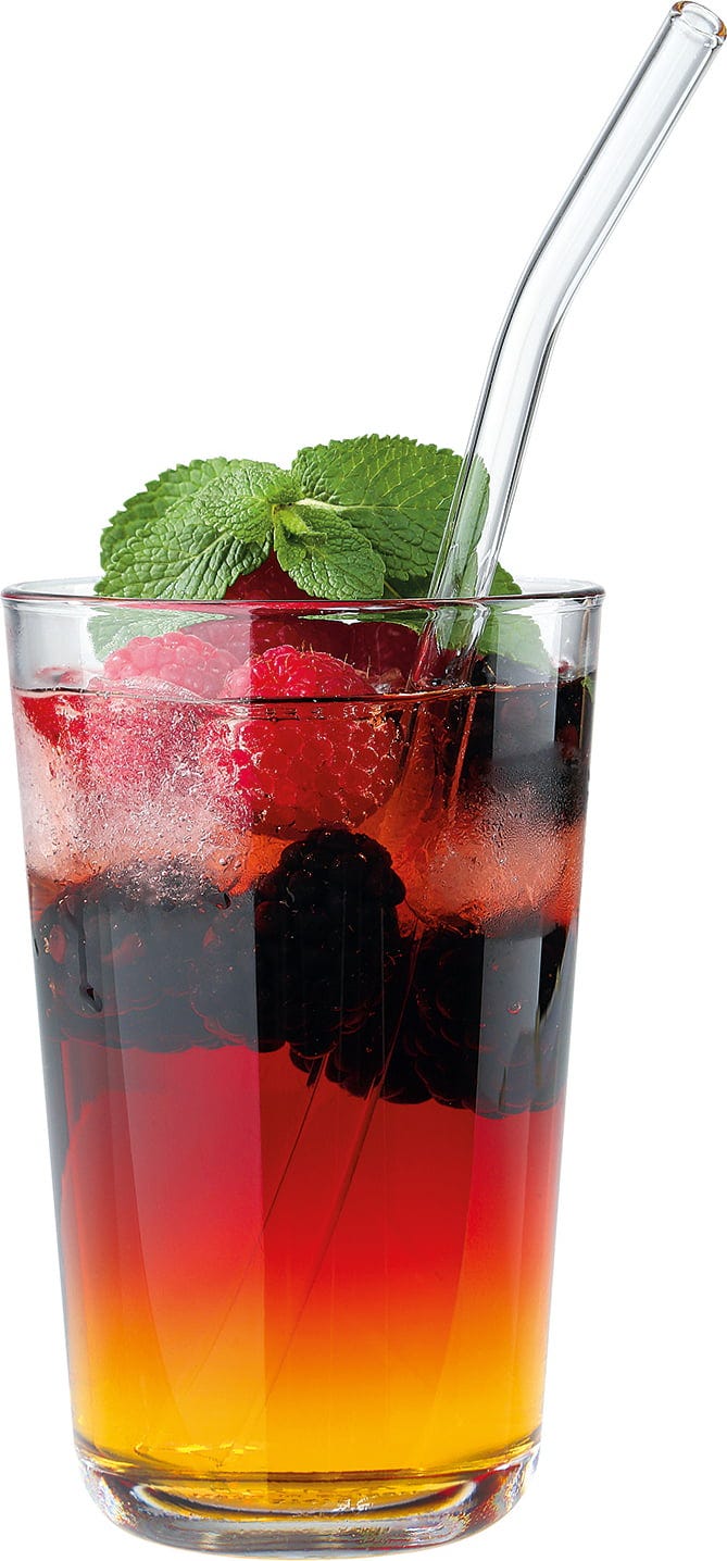 Die Trinkhalme VETRO bestehen aus robustem Spezialglas. So halten sie sowohl eiskalten Drinks als auch heißen Getränken mühelos stand. Die sanfte Krümmung verleiht jedem Glas – ob Longdrink-Becher oder bauchiges Cocktailglas – eine besonders stilvolle Note. Im Gegensatz zu Kunststoffhalmen sind sie unbegrenzt wiederverwendbar und leisten damit einen wertvollen Beitrag zur Müllvermeidung.