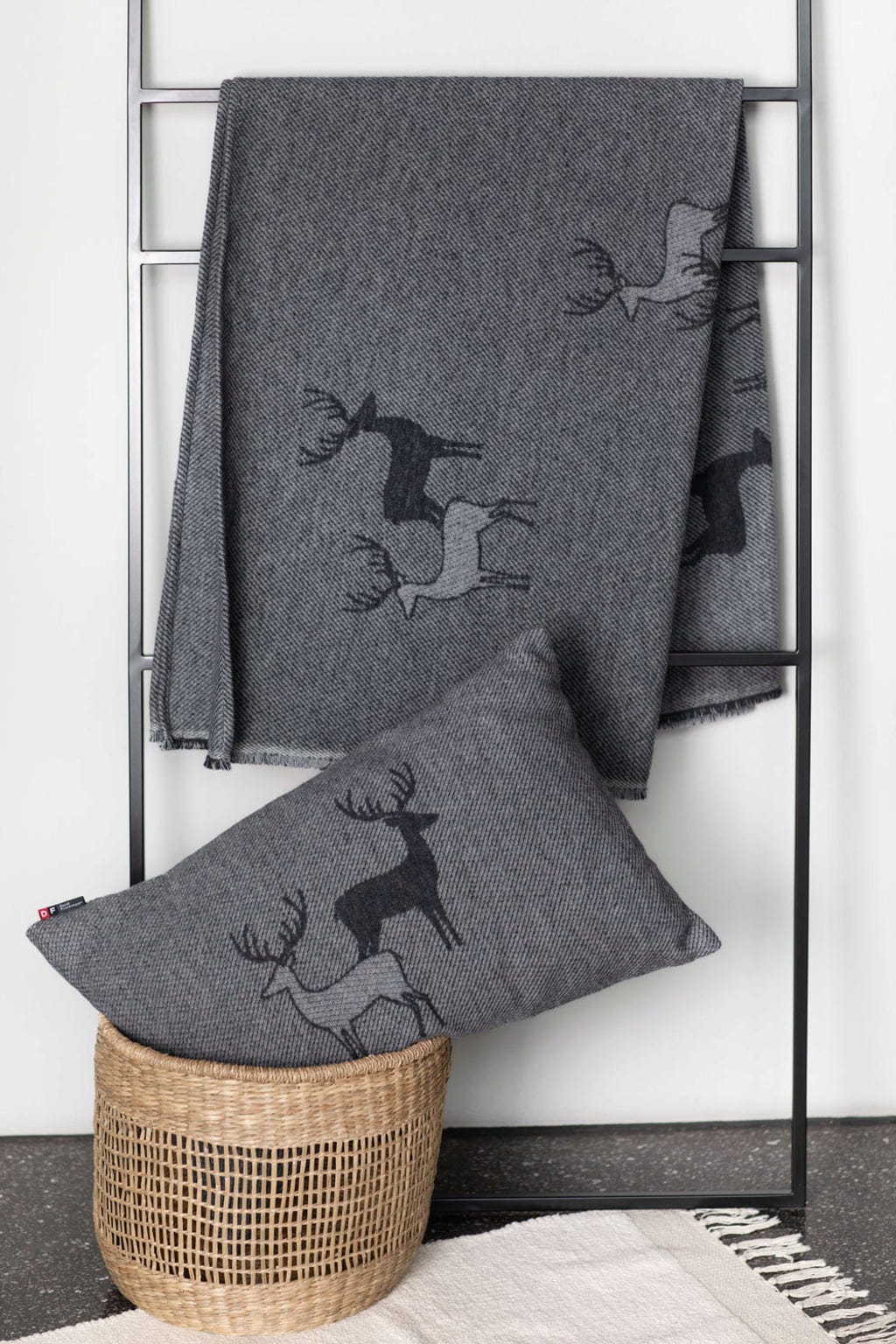 David Fussenegger LUCA Flanelldecke "Hirschpaare", anthrazit