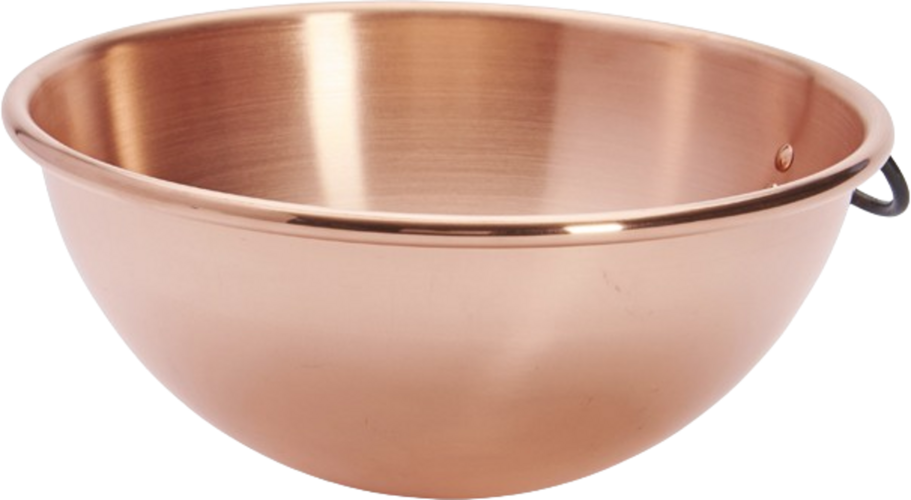 Mit dieser Schlagschüssel aus massivem Kupfer holst du dir ein traditionelles Profi-Utensil in deine Küche, das dir dabei hilft, perfekte Ergebnisse zu erzielen! Die besondere Halbkugelform ist ideal, um auf horizontale Weise viel Luft unter den Eischnee zu schlagen, sodass er wunderbar voluminös wird und nichts über den Rand schwappt.