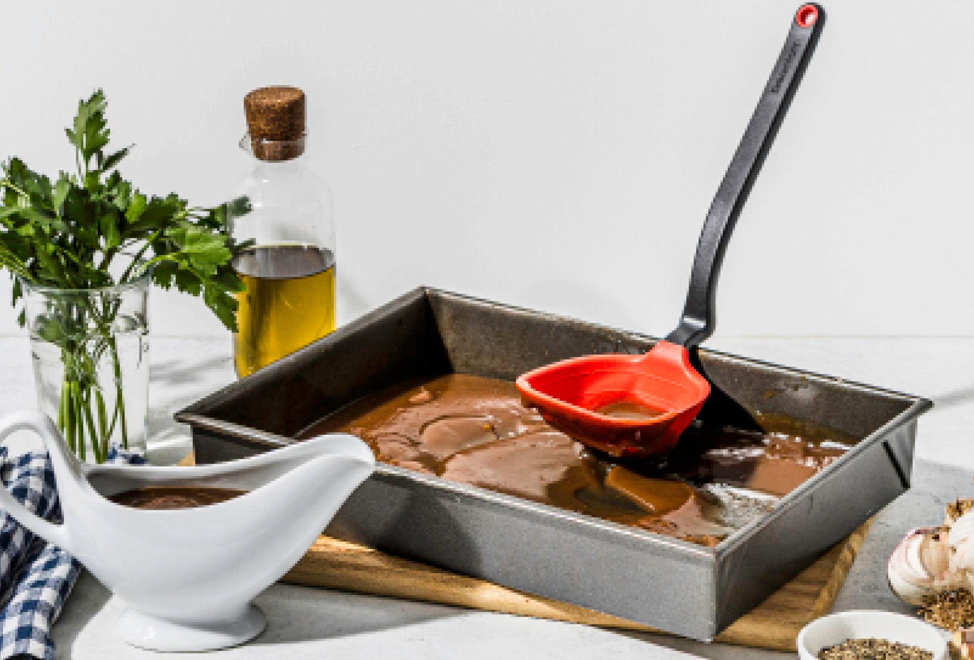 Vergiss sperrige Schöpfkellen, die deine Schubladen blockieren, denn der Fladle macht sich auf Knopfdruck ganz flach und passt so in jede Lade! Dieses clevere Tool ist ein echtes Multitalent: Die bewegliche, faltbare Kelle ist flexibel nutzbar und besitzt einen Silikonrand, mit dem du Saucen und Suppen restlos aus jedem Topfwinkel kratzt, ohne deine empfindliche Antihaft-Beschichtung zu beschädigen.