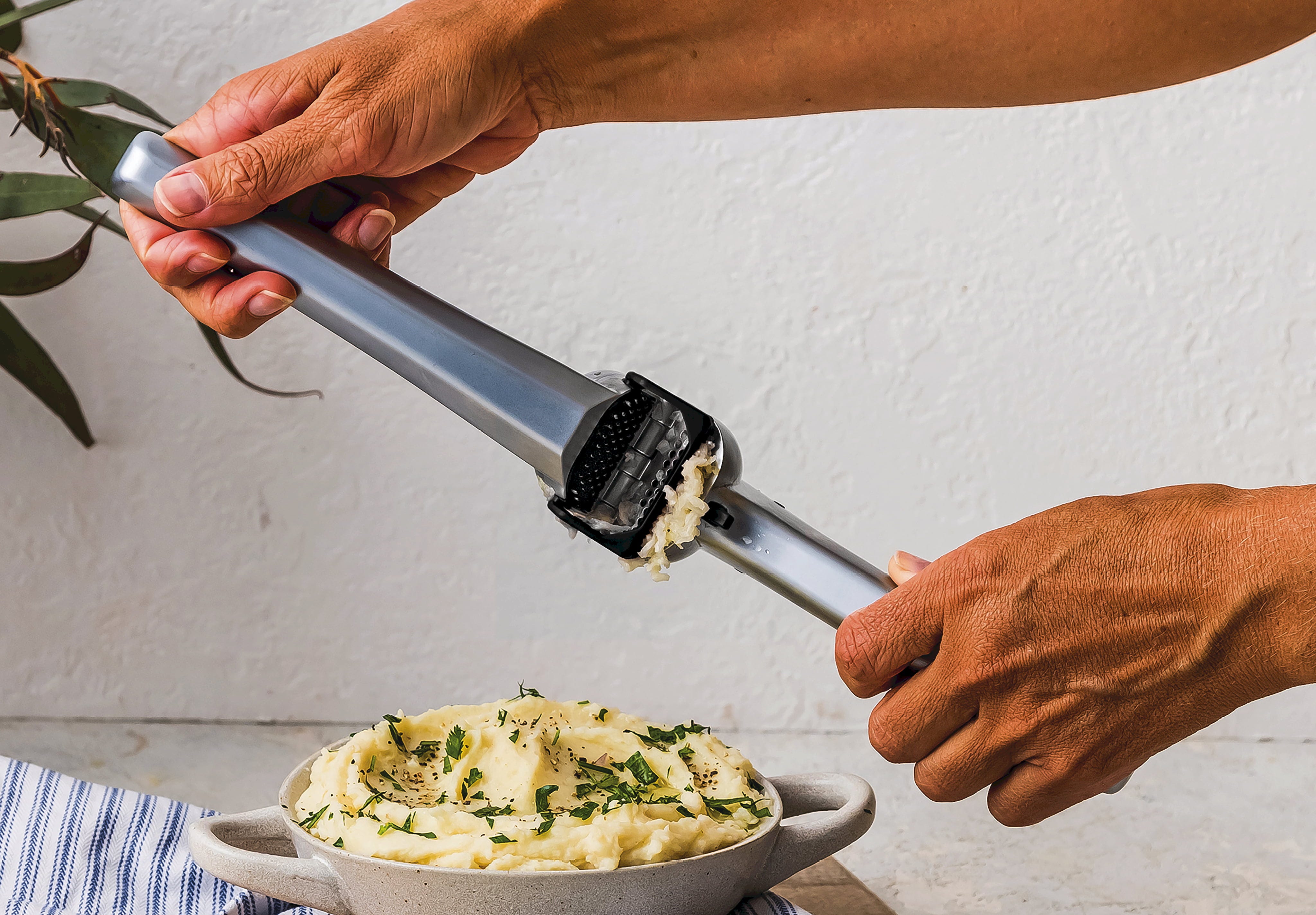 Mit der Knoblauchpresse Garject von Dreamfarm erlebst du die effizienteste Art, Knoblauch zu verarbeiten. Dank ihres kraftvollen Designs kannst du mehrere Zehen gleichzeitig pressen – und das sogar, ohne sie vorher zu schälen!