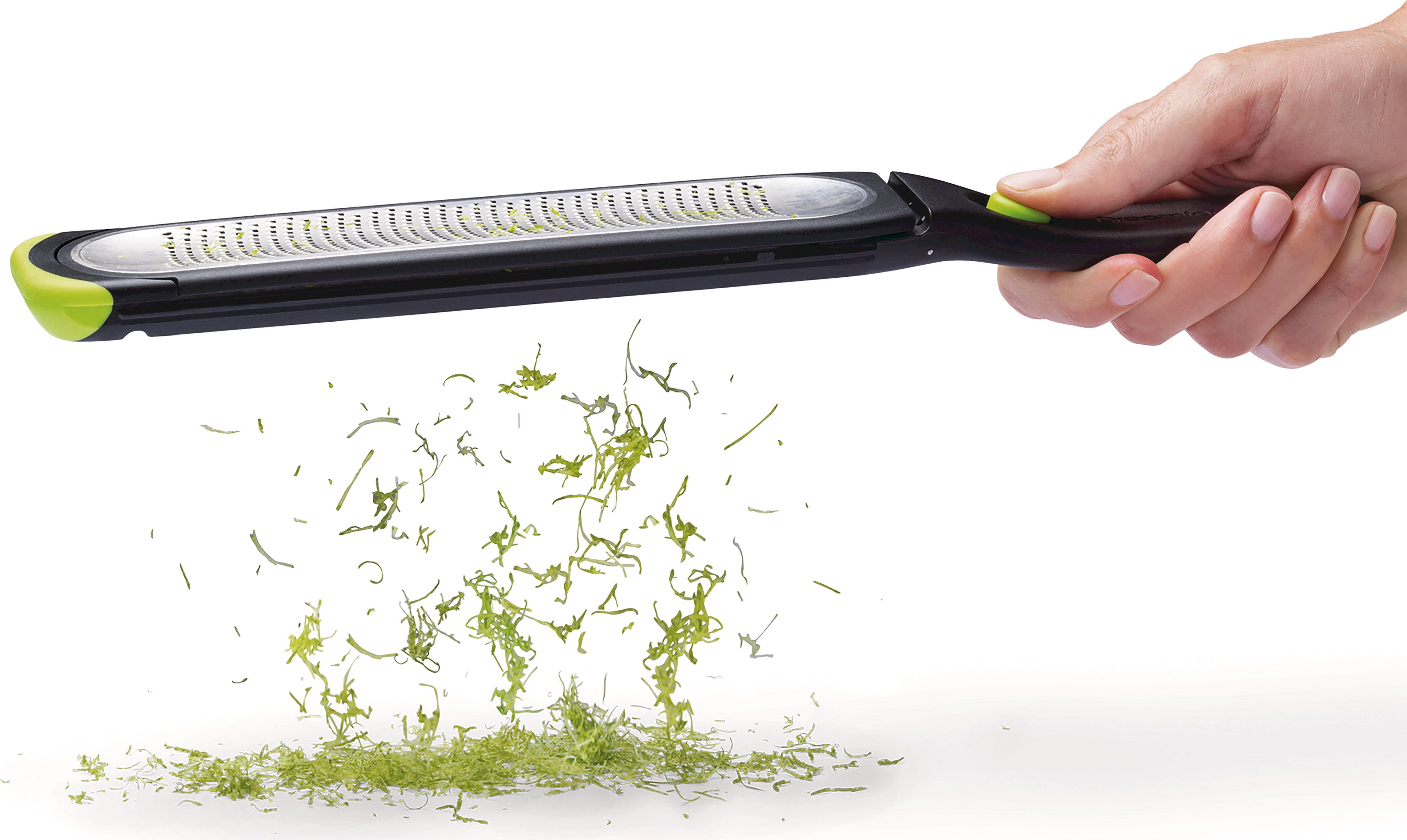 Das absolute Highlight ist die innovative Selbstreinigungsfunktion: Per Knopfdruck biegt sich die Reibefläche, sodass alle Zesten von selbst abfallen und nichts am Rand hängen bleibt. Inklusive praktischem Lagerungsschutz, der auch als Auffangbehälter verwendet werden kann. Gefertigt aus langlebigem Edelstahl, ist diese spülmaschinenfeste Reibe die ideale Wahl für präzises und effizientes Arbeiten in deiner Profiküche!