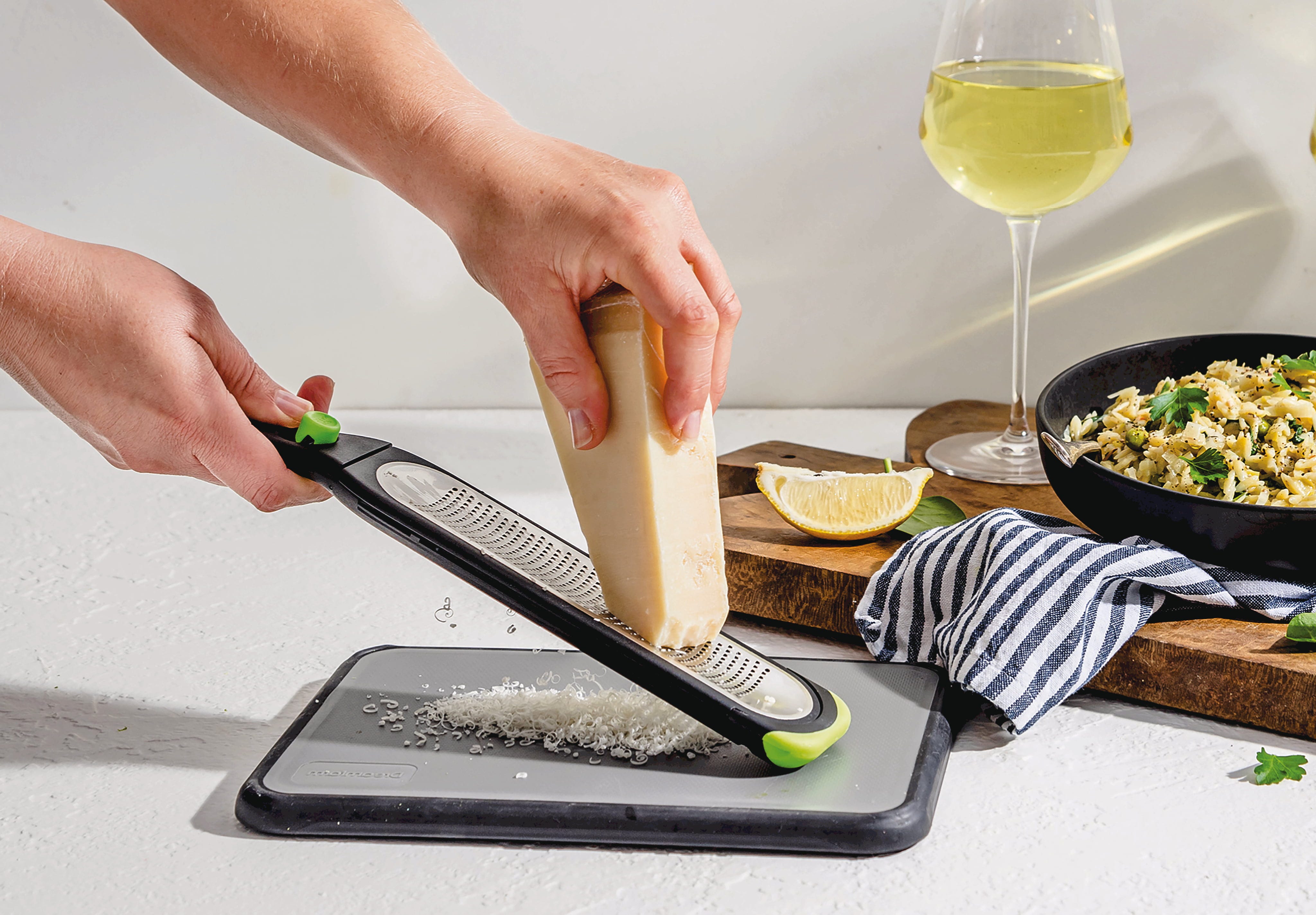 Veredle deine Gerichte im Handumdrehen mit feinsten Zesten, ohne dass wertvolle Reste an der Reibe hängen bleiben! Die Reibe Ozest Fine von Dreamfarm besticht durch ihre 441 rasiermesserscharfen, geätzten Zähne und eine konkave Form, die das Reibgut sicher in der Mitte führt.