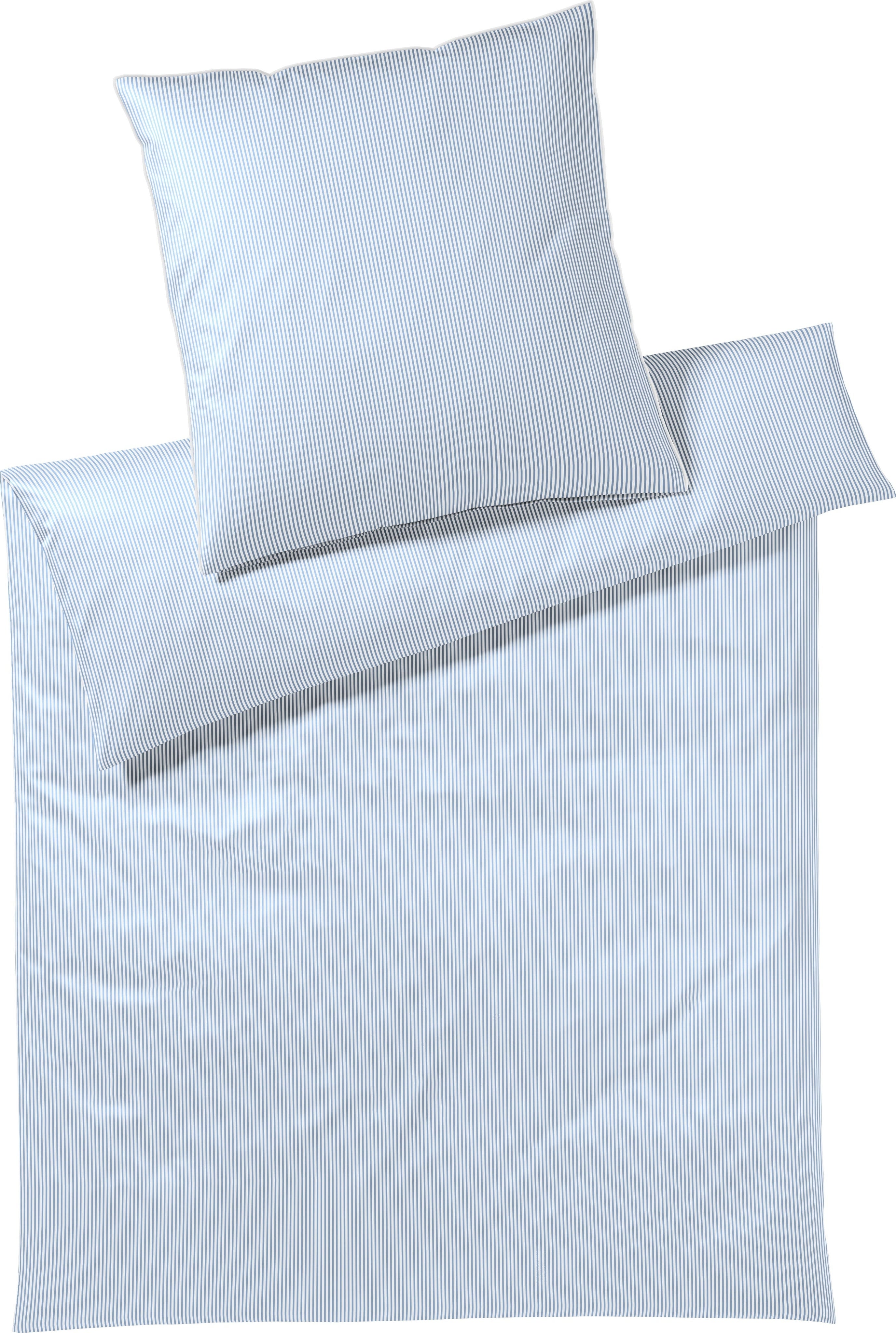 elegante Bettwäsche-Set Mako-Satin Hamburger Streifen Blau
