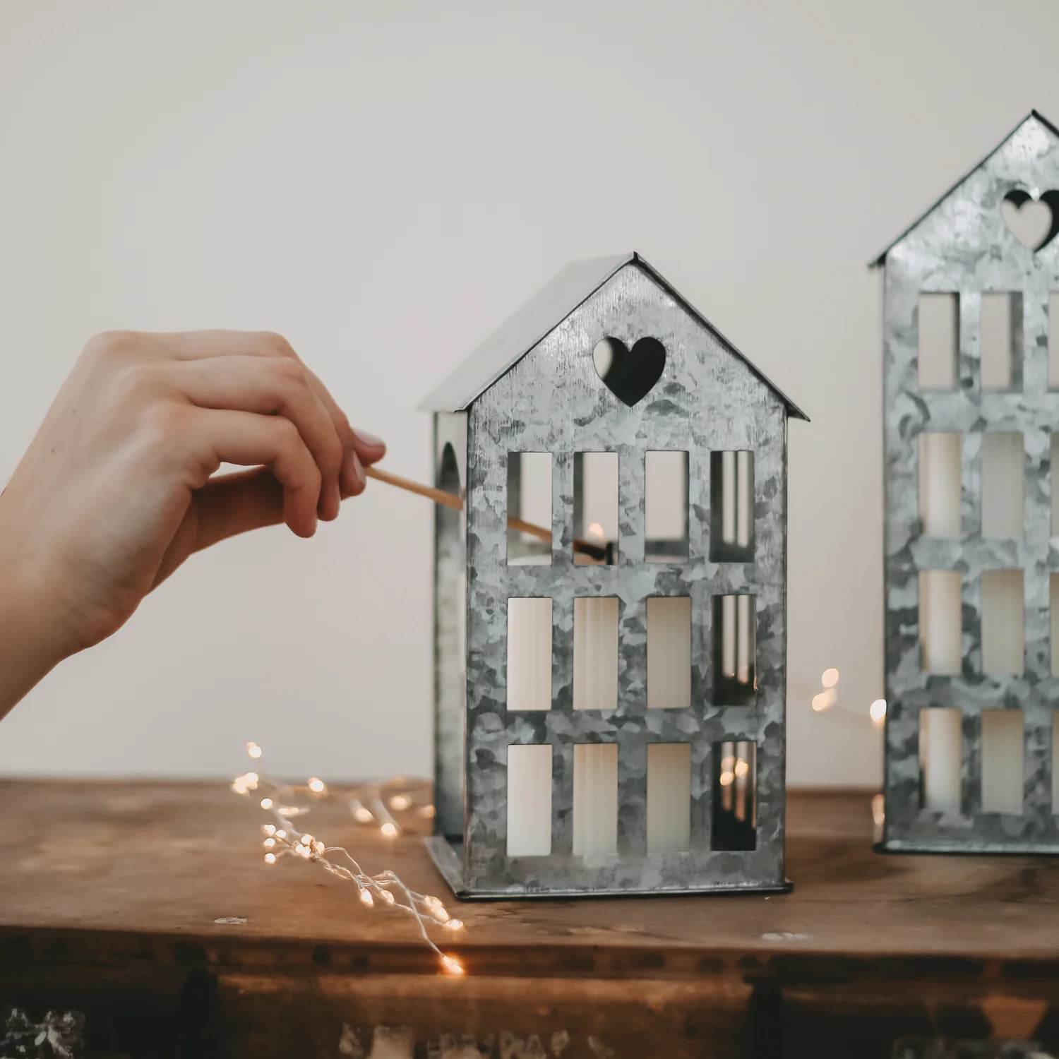 Schlichtes Design & zeitlose Eleganz. Das aus Metall gefertigte Häuschen lädt zum individuellen Dekorieren und Schmücken ein: egal ob mit Teelicht, Kerze oder Lichterkette. Ein bezaubernder Blickfang, der sich harmonisch in jegliche Wohnumgebung einfügt - und das nicht nur zu Weihnachten.