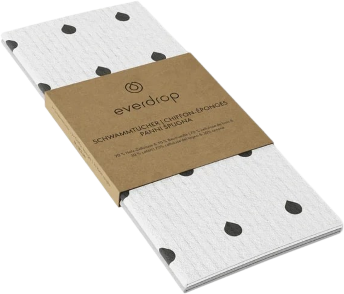 Die Schwammtücher von everdrop sind reine Naturprodukte, die aus nachwachsenden Rohstoffen wie Holz, Baumwolle und Zellulose hergestellt werden und daher kompostierbar sind. Da sie in der Maschine gewaschen und wiederverwendet werden können, sind die Schwammtücher langlebige und nachhaltige Produkte, die durch ihre hohe Aufnahmekapazität und Reinigungsleistung überzeugen.