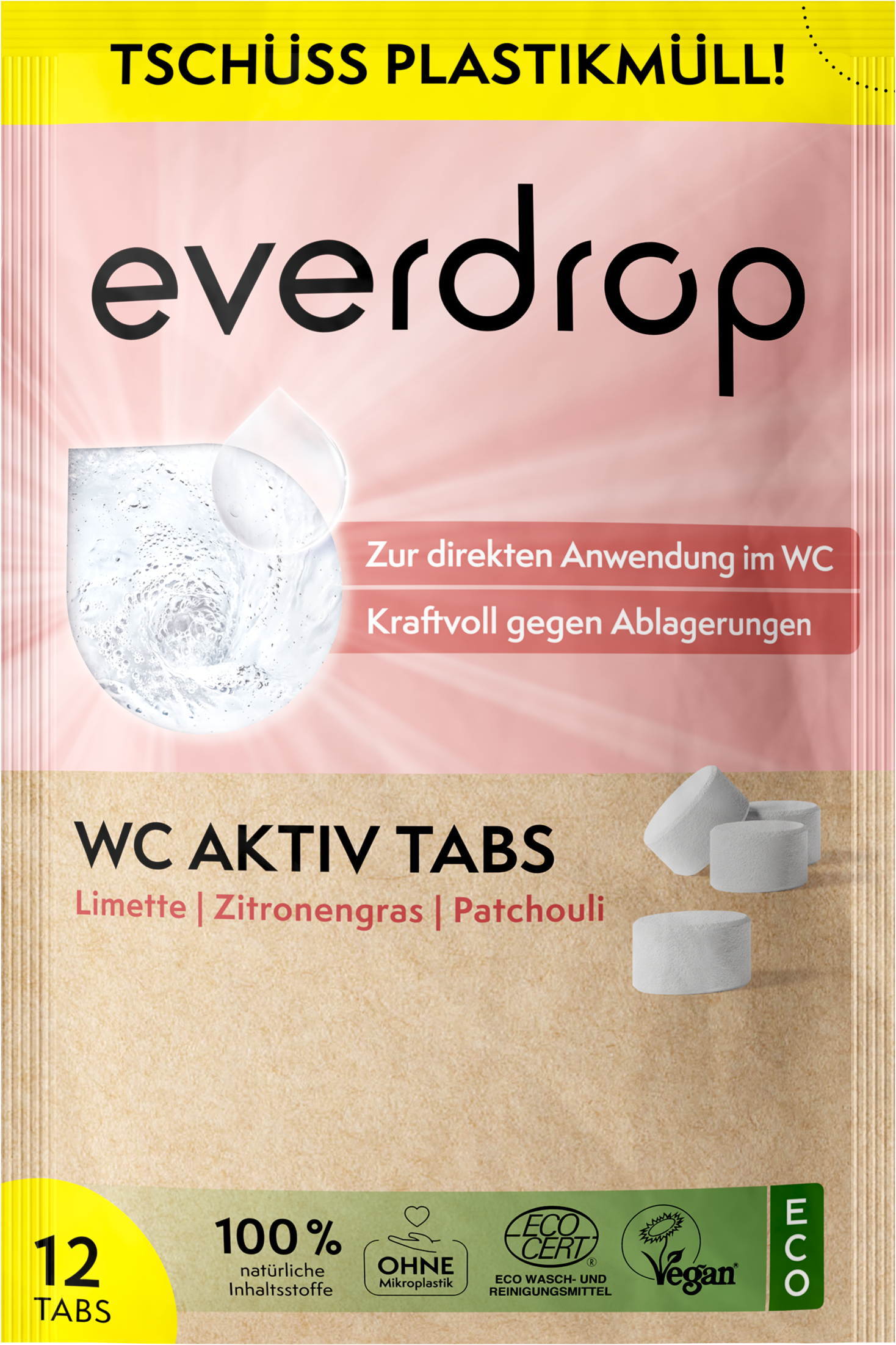 Die WC aktiv Tabs von everdrop überzeugen durch die hohe Reinigungskraft und bekämpfen langfristig die Ursache unangenehmer Gerüche. Die zu 100 % natürlichen Inhaltsstoffe unterstützen gegen Kalk, Urinstein und hartnäckigen Schmutz.
