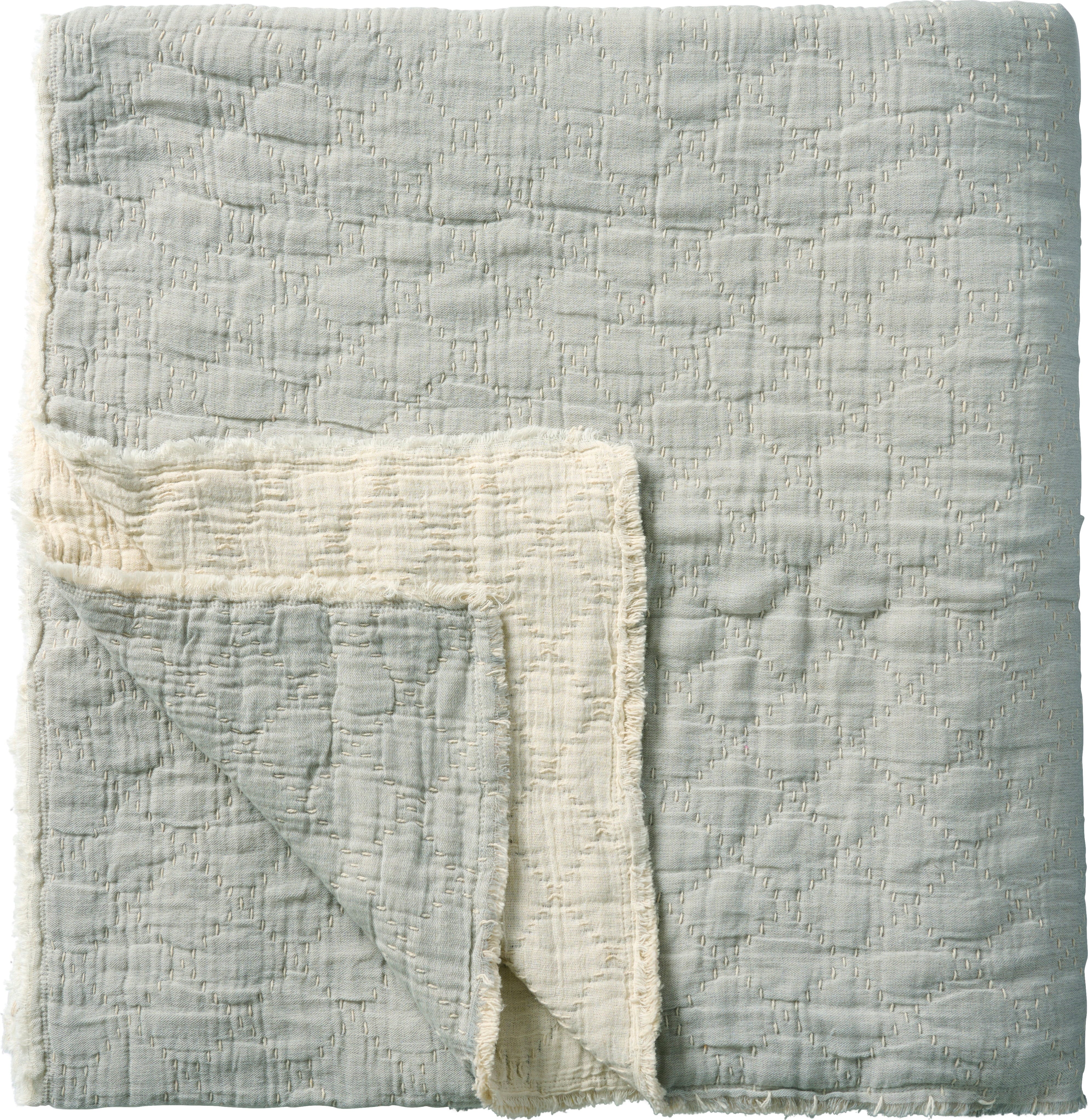 IB Laursen Decke mit Karo-Stickerei, Hellblau / Offwhite