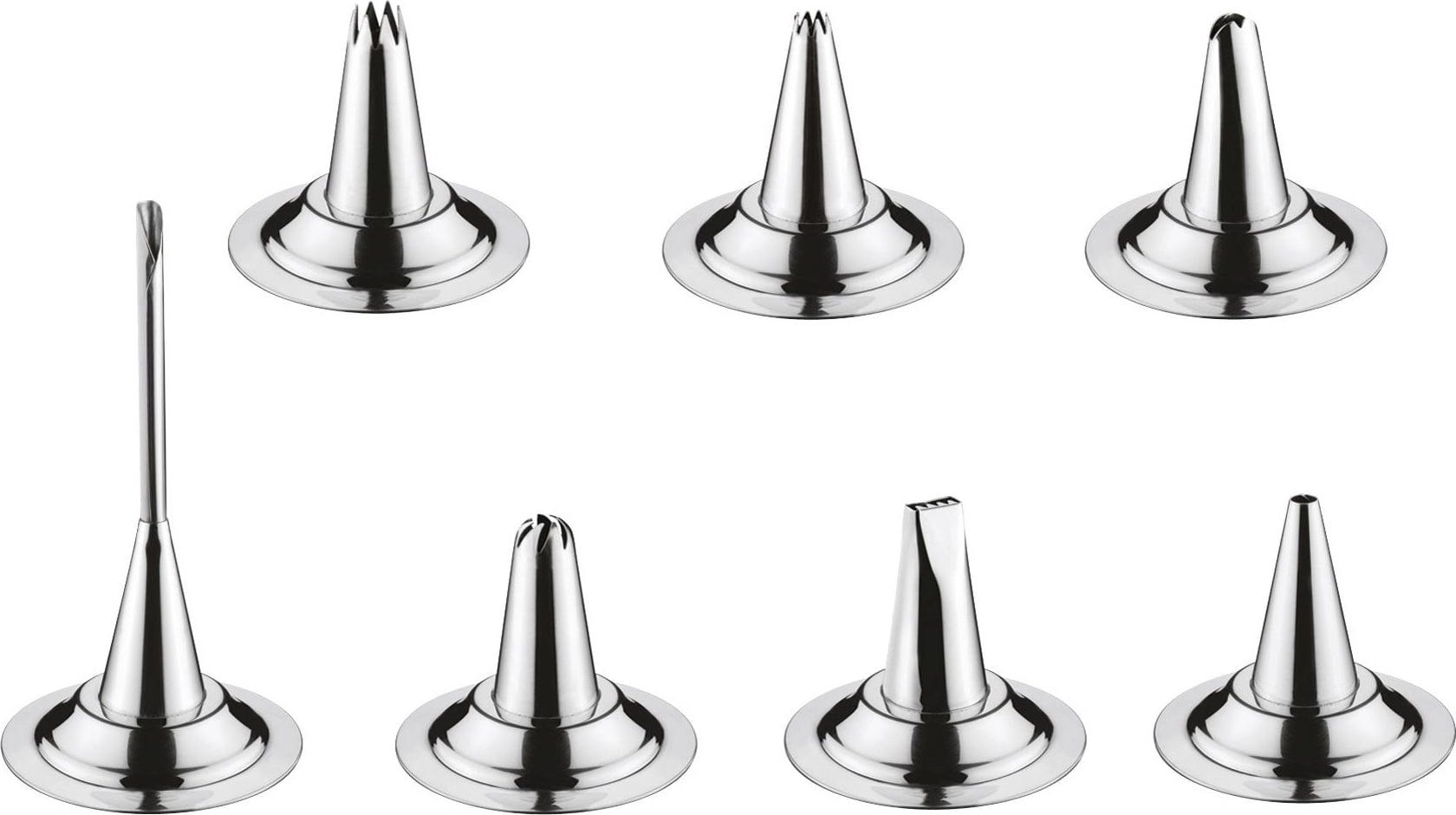 - 7 verschiedene Tüllen (z. B. Stern, Rose, Blätter)Komfortables Arbeiten dank raschem Füllen & leichtgängigem Pressstab
