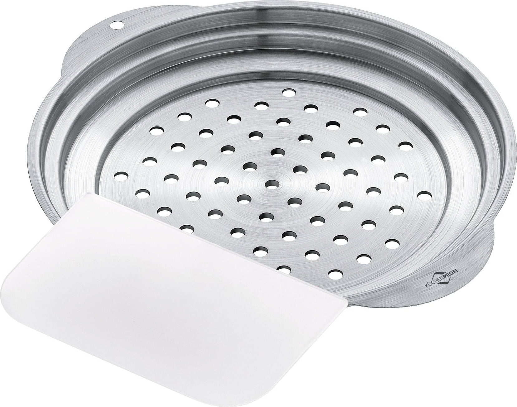 - Einfache Anwendung: Spätzle-Sieb in kochendes Wasser tauchen, anschließend die Teigmasse durch das Sieb ins sprudelnde Wasser schaben.