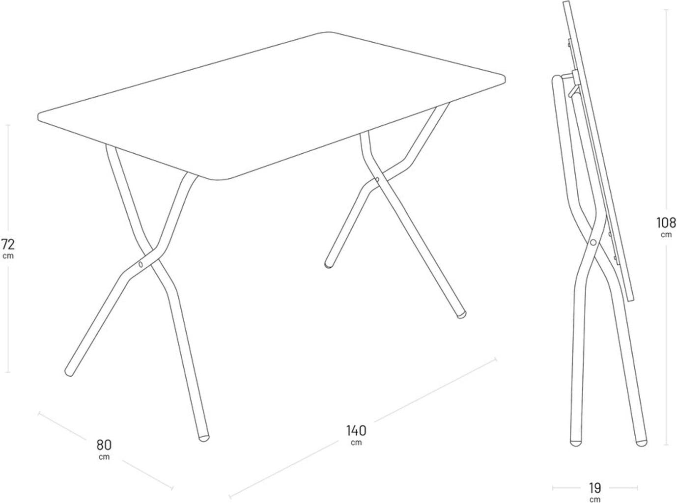 - Tischplatte: Verzinkter Stahl mit Korrosionsschutz. 100 % Polyesterlackierung mit UV-Beständigkeit