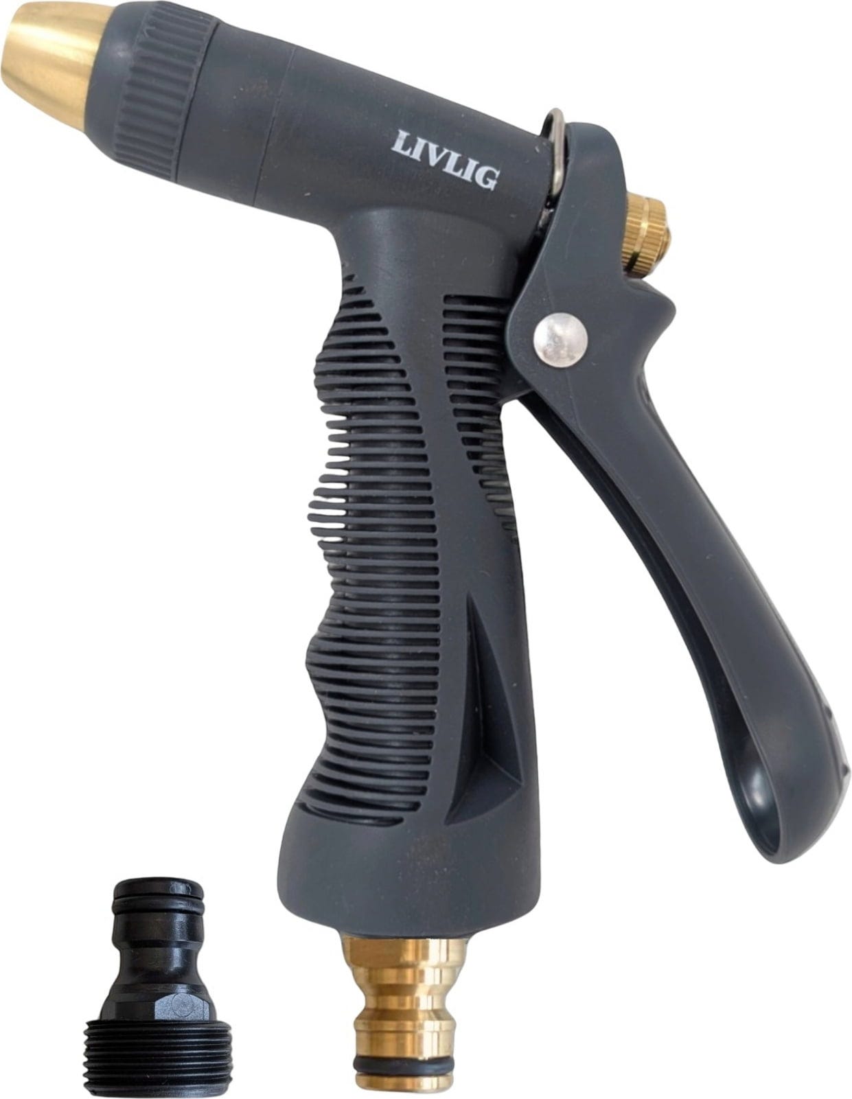 Diese Gartenspritze ist das Perfect Match zu den Gartenschläuchen von Livlig und kann darüber hinaus auch mit anderen handelsüblichen 1/2 Zoll Gartenschläuchen kombiniert werden. Sie vereint stilvolles Design mit hoher Funktionalität und ist das perfekte Gartenzubehör für Bewässerung sowie Reinigungsarbeiten.