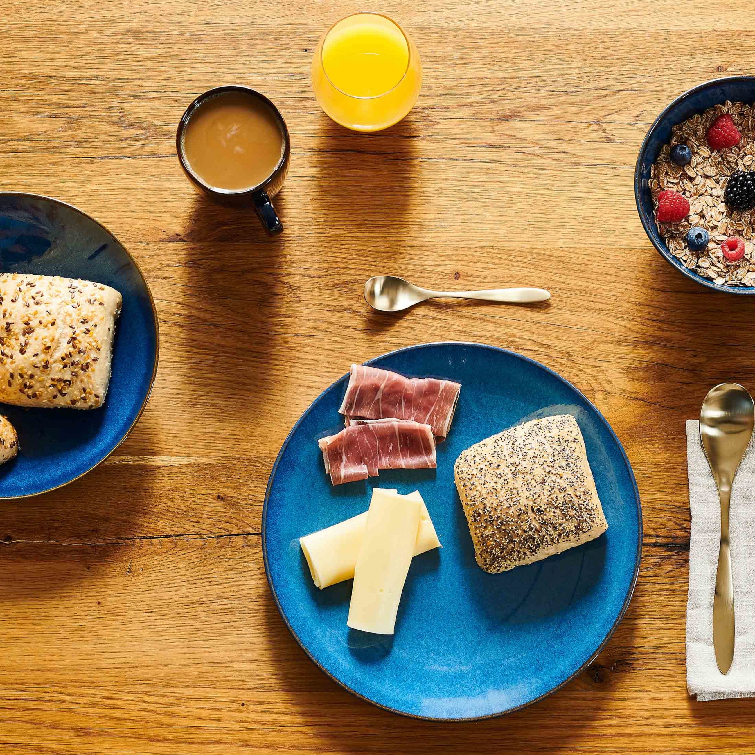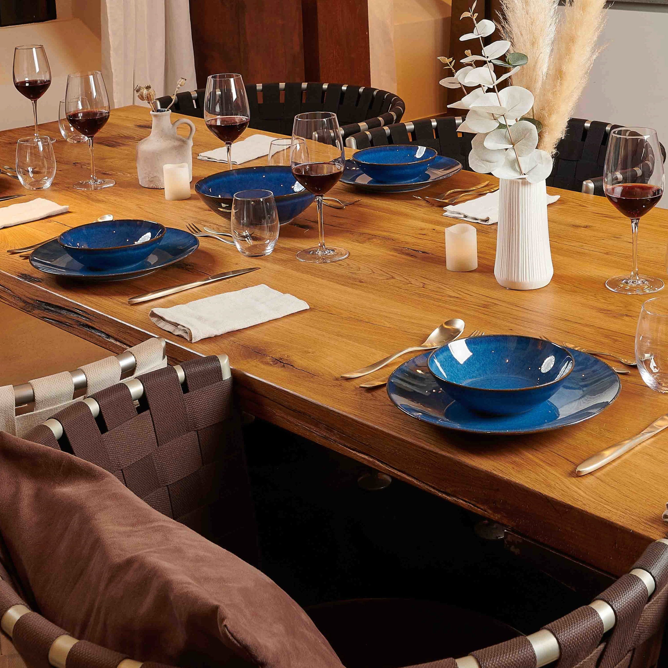 Hol dir das pure mediterrane Lebensgefühl direkt an deinen Esstisch mit dem 18-teiligen Tafelservice Ossia. Die Serie besticht durch moderne, schlichte Formen aus robustem Steinzeug und eine unregelmäßig schimmernde Glasur, die jedes Teil zum Vintage-Unikat macht.