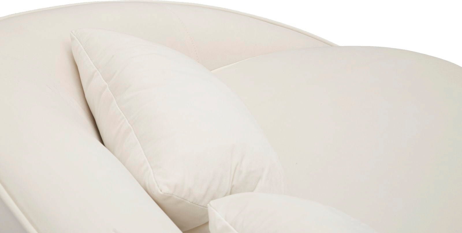Verleihe deinem Wohnzimmer einen Hauch von Eleganz, Frische und luxuriösem Komfort mit diesem stilvollen Dreisitzer-Sofa! Der luxuriöse, weiche Polsterstoff in einem hellen Cremeton und die weichen, einladenden Linien der geschwungenen, asymmetrischen Form sorgen für einen beeindruckenden Blickfang.