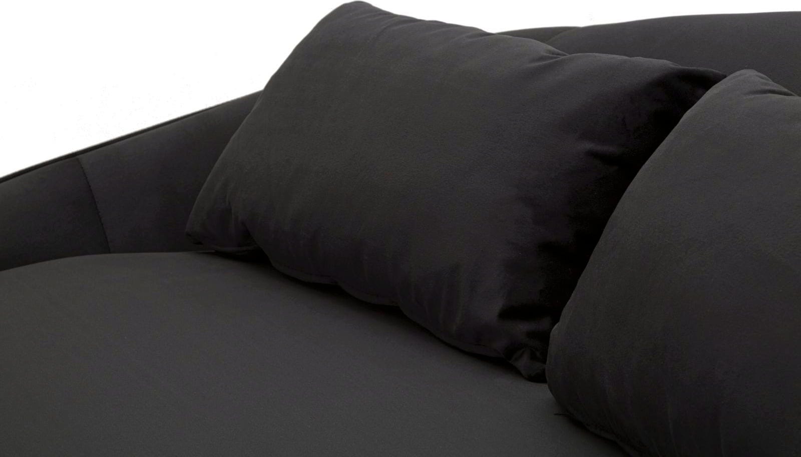 Verwandle dein Wohnzimmer in eine Oase des modernen Glamours mit diesem eleganten Dreisitzer-Sofa! Der luxuriöse, schwarze Stoff in Samtoptik und die weichen, einladenden Linien der geschwungenen, asymmetrischen Form sorgen für einen beeindruckenden Blickfang.