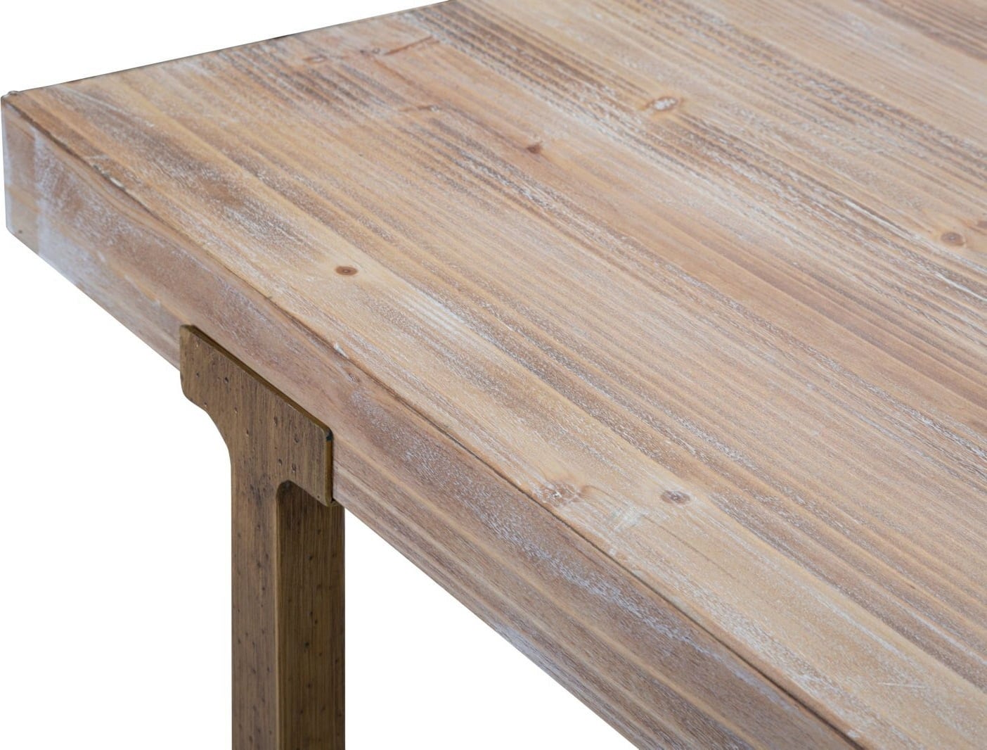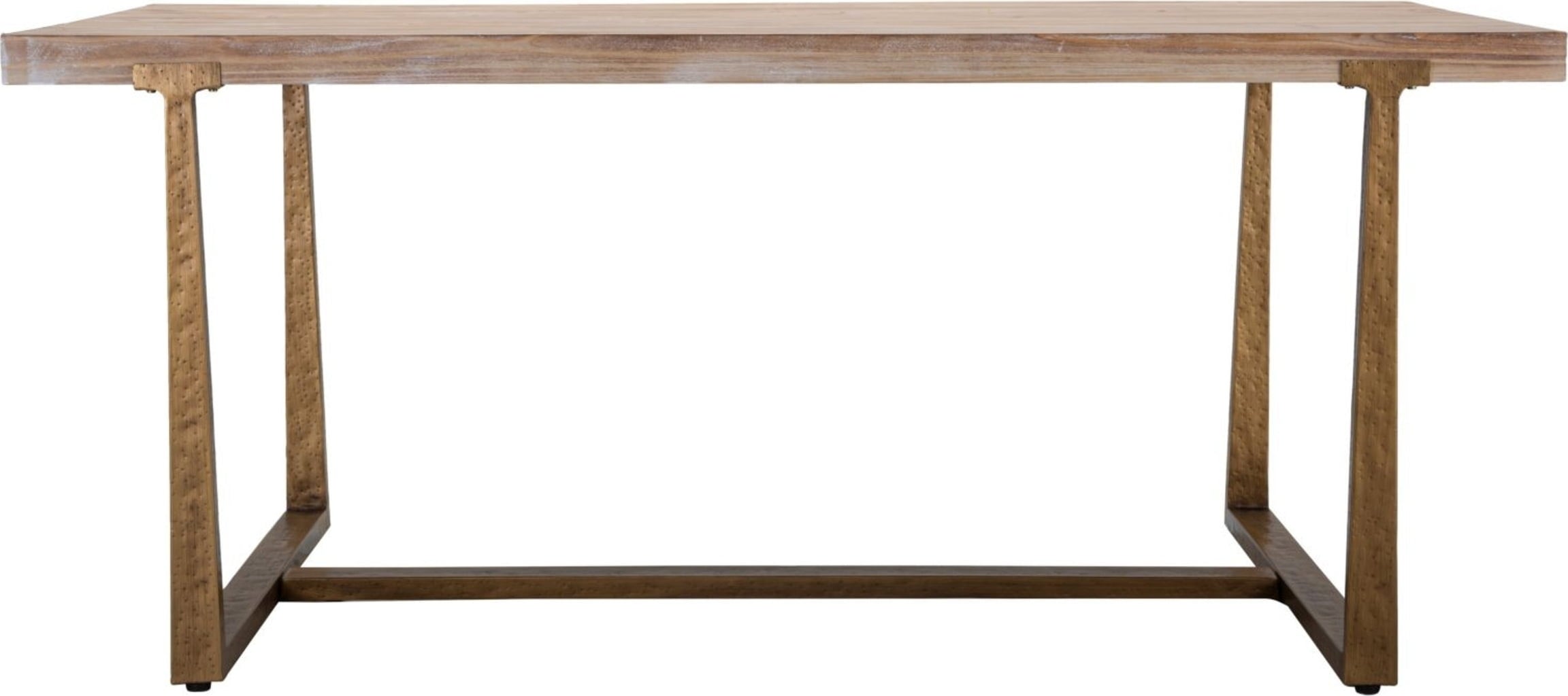 Verleihe deinem Ess- oder Arbeitsbereich mit diesem rechteckigen Tisch einen markanten, modernen Akzent, der Robustheit und Stil perfekt vereint! Die klare und prägnante Linienführung wird durch das Zusammenspiel der Materialien bestimmt: Die breite, helle Tischplatte aus Holz mit sichtbarer Maserung strahlt eine natürliche, rustikale Wärme aus.