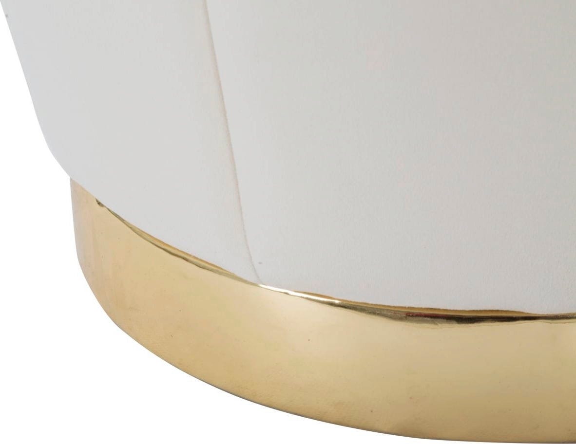 Setze einen glamourösen Akzent in deinem Wohn- oder Schlafzimmer mit diesem eleganten Pouf, dessen Design von den luxuriösen Ankleidezimmern großer Hollywood-Diven inspiriert ist! Er ist mit einem weichen, cremefarbenen Samtbezug gepolstert, der ihm eine luxuriöse Haptik verleiht.