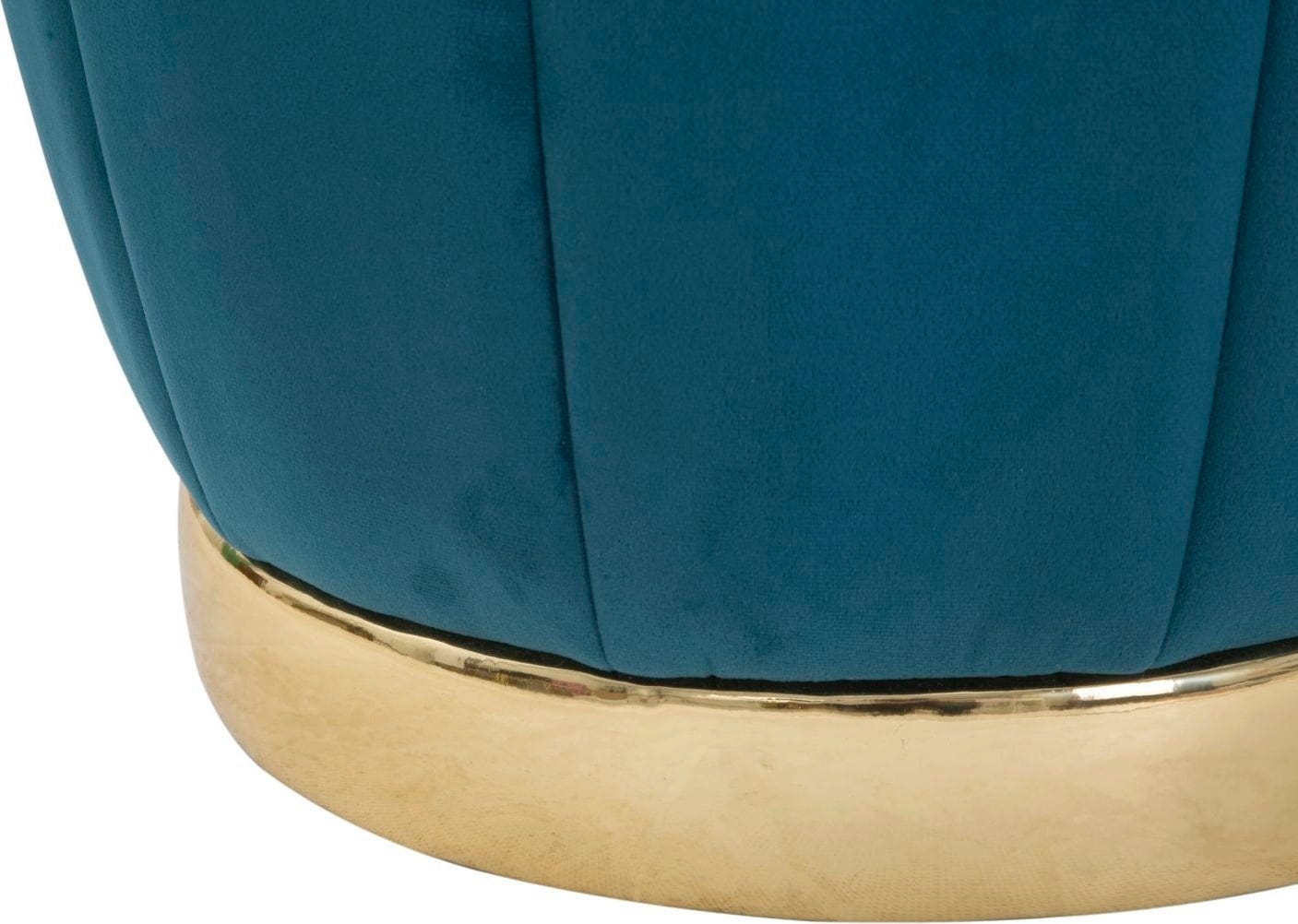 Setze einen glamourösen Akzent in deinem Wohn- oder Schlafzimmer mit diesem eleganten Pouf, dessen Design von den luxuriösen Ankleidezimmern großer Hollywood-Diven inspiriert ist! Er ist mit einem weichen, petrolfarbenen Samtbezug gepolstert, der ihm eine luxuriöse Haptik verleiht.
