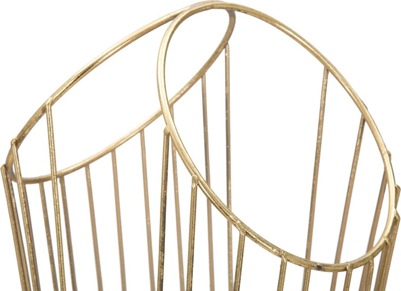 Die filigranen, fächerförmig angeordneten Metallstäbe verleihen dem Objekt eine skulpturale Leichtigkeit und eine dynamische Formgebung. Dank seiner edlen Optik ist er weit mehr als nur ein praktischer Ordnungshelfer – er verleiht selbst der verstecktesten Ecke einen Hauch von Opulenz und Eleganz. Die solide, runde Basis sorgt für einen stabilen Stand und fängt Feuchtigkeit zuverlässig auf.
