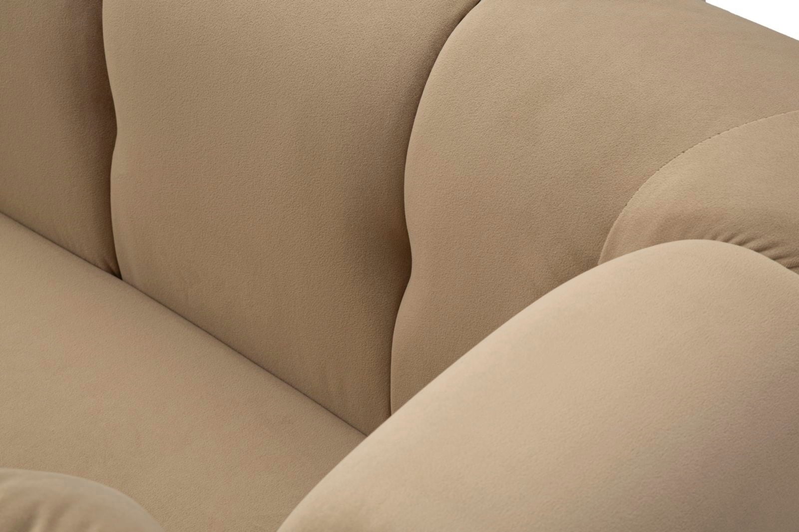Die geschwungenen Armlehnen werden elegant durch glänzende, goldene Akzente hervorgehoben. Getragen wird der Sessel von kurzen, runden goldenen Beinen, die den modernen und luxuriösen Look perfekt unterstreichen. Der Sessel verspricht höchsten Komfort und ist die ideale Ergänzung für moderne, elegante Einrichtungen, die Wert auf Stil und Gemütlichkeit legen.