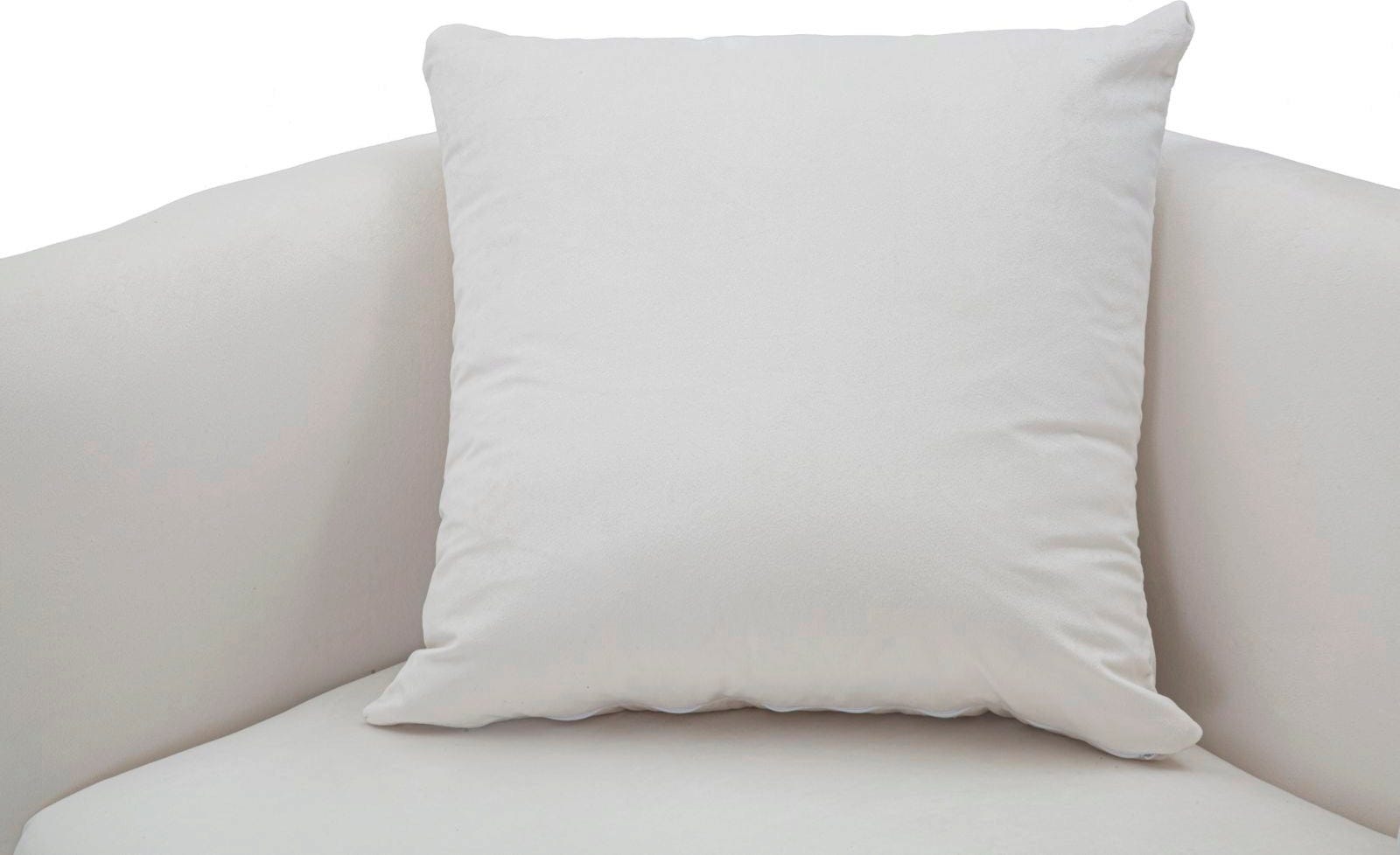 Die goldfarbenen Metallbeine bilden einen eleganten Kontrast zum Stoff, wobei Gold und Samt zu einem einzigartigen Stil verschmelzen – zwei passende Kissen sind im Lieferumfang enthalten!