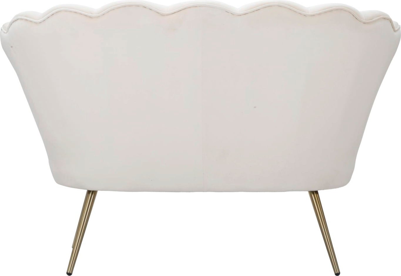 Setze ein stilvolles Statement in deinem Wohn- oder Schlafzimmer mit diesem außergewöhnlichen Zweisitzer-Sofa! Das Design besticht durch eine Rückenlehne, die in ihrer geschwungenen Form an filigrane Blütenblätter erinnert. Der cremefarbene Samtbezug verleiht dem Möbelstück zudem eine edle Haptik sowie eine sanfte Optik!