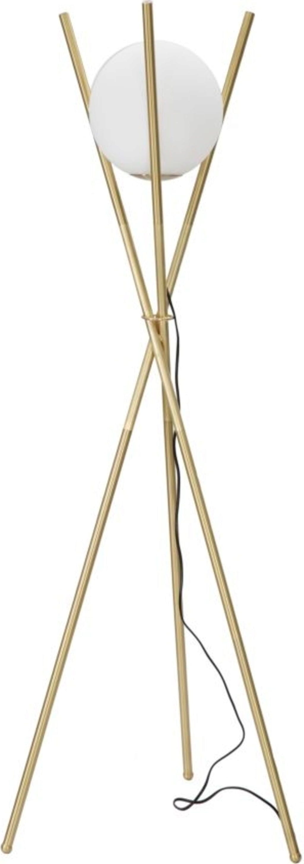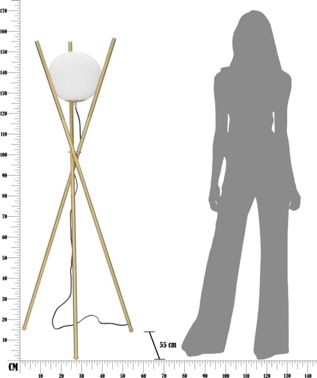 Das Design besticht durch ein außergewöhnliches Gestell aus drei schlanken Metallstäben, die sich in der Mitte kreuzen und eine dynamische X-Form bilden. An der Spitze wird eine einzelne, elegante weiße Glaskugel wie ein kostbares Juwel gehalten. Diese Glaskugel sorgt für ein sanftes, diffuses Licht, das eine warme und einladende Atmosphäre schafft. Die Glamy X ist mehr als eine Lichtquelle – sie ist ein modernes Kunstobjekt, das zeitlose Eleganz und architektonische Leichtigkeit perfekt verkörpert!
