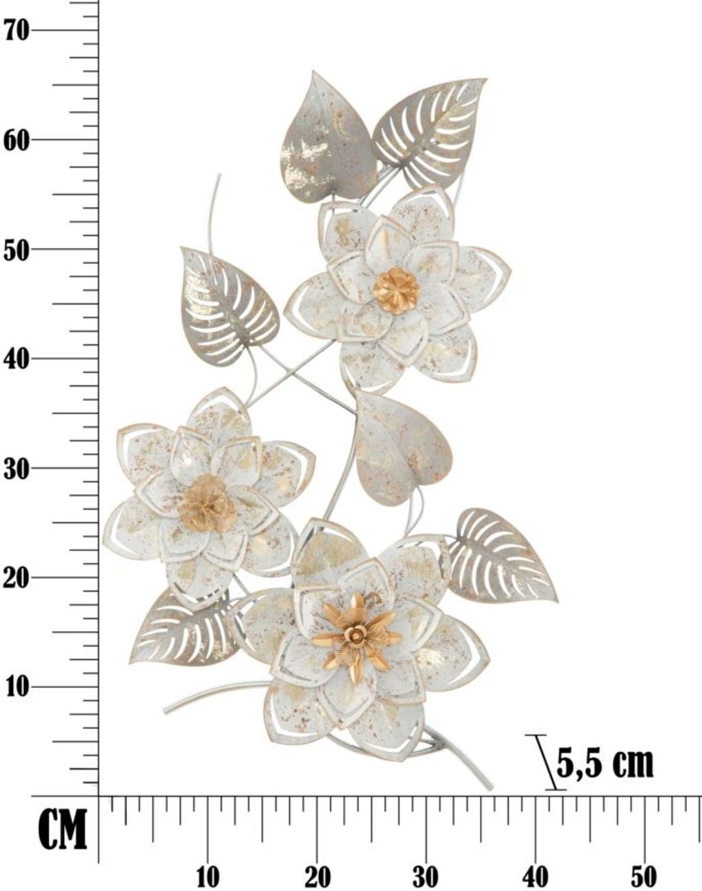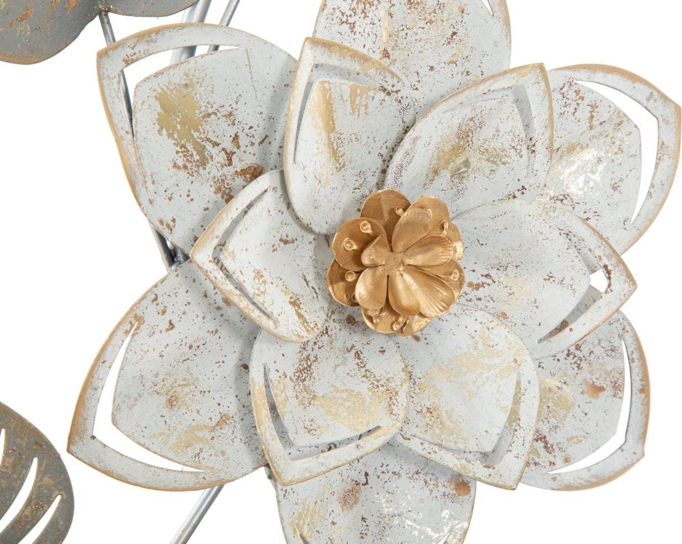 Mit der Wanddekoration Artic von Mauro Ferretti verwandelst du deine Wände in eine frostig-schöne Kunstgalerie voller Eleganz. Dieses beeindruckende 3D-Paneel setzt den aktuellen Trend der plastischen Wandgestaltung perfekt um und verleiht jedem Raum eine überraschende Tiefe sowie eine exklusive Atmosphäre. Die drei großzügig gearbeiteten Blüten ziehen durch ihr naturnahes Design sofort alle Blicke auf sich, während die feine Kombination aus kühlem Weiß und luxuriösen Goldakzenten für einen Hauch von Glamour sorgt.
