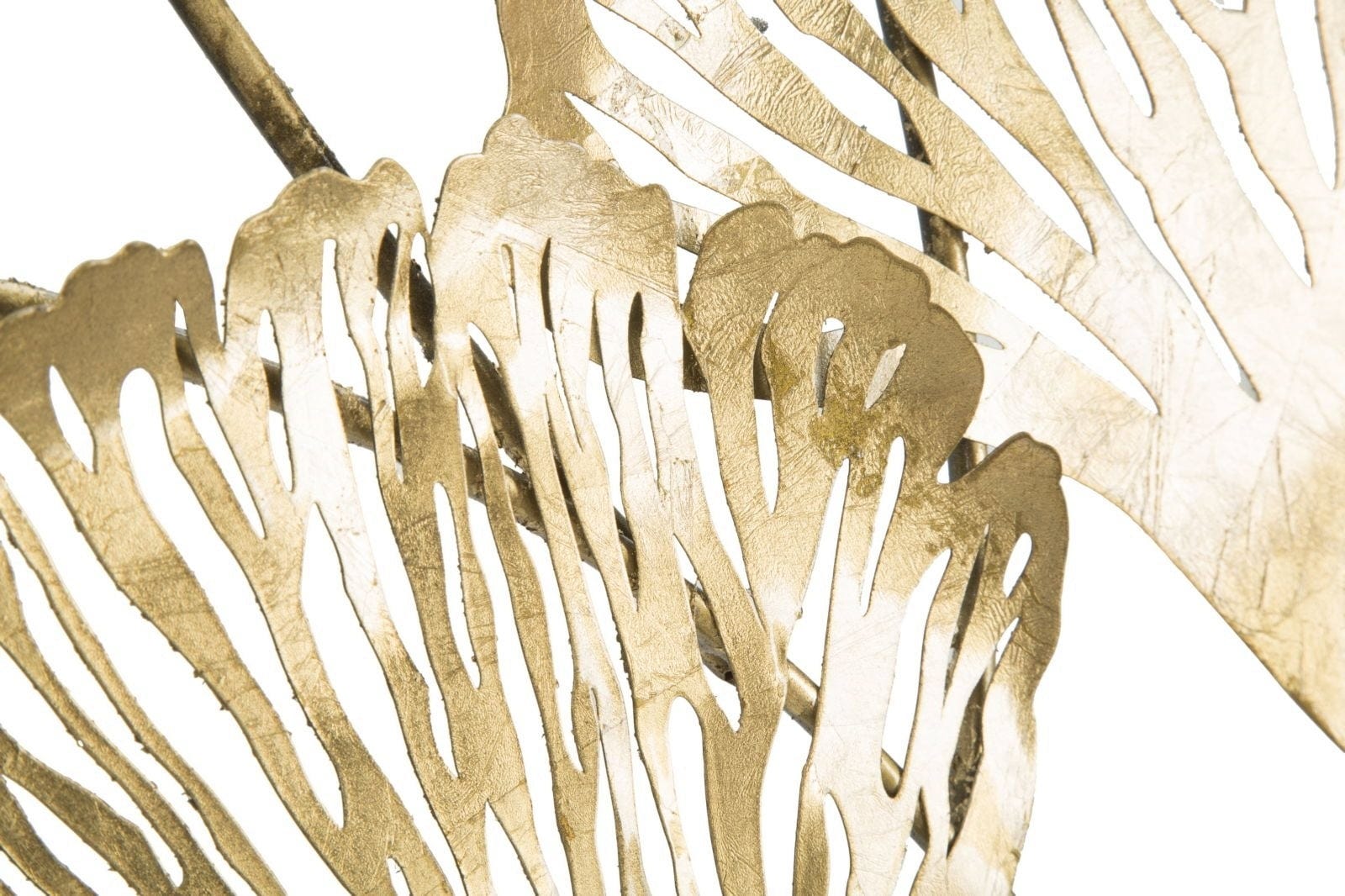 Besonders beeindruckend ist die filigrane Gitterstruktur der Blätter, die dem Objekt eine faszinierende Leichtigkeit verleiht und für ein wunderschönes Spiel aus Licht und Schatten sorgt. Ob im Wohnzimmer, Flur oder Schlafzimmer – die Wanddekoration Iris vertikal verleiht jedem Raum sofort einen Hauch von zeitloser Eleganz und edlem Glanz.