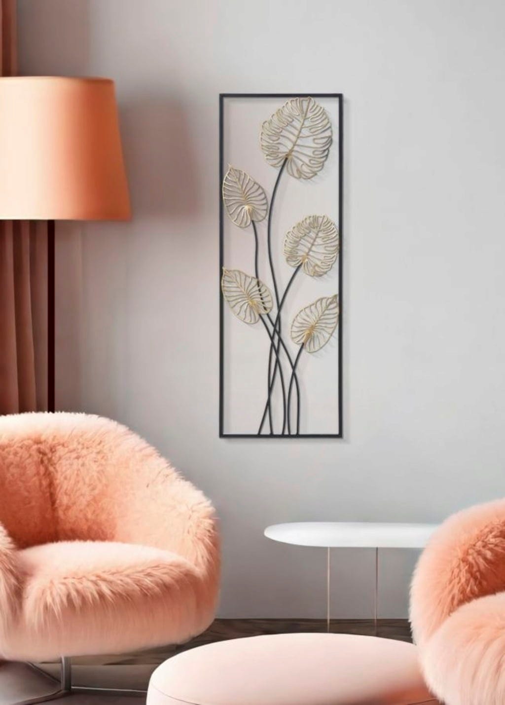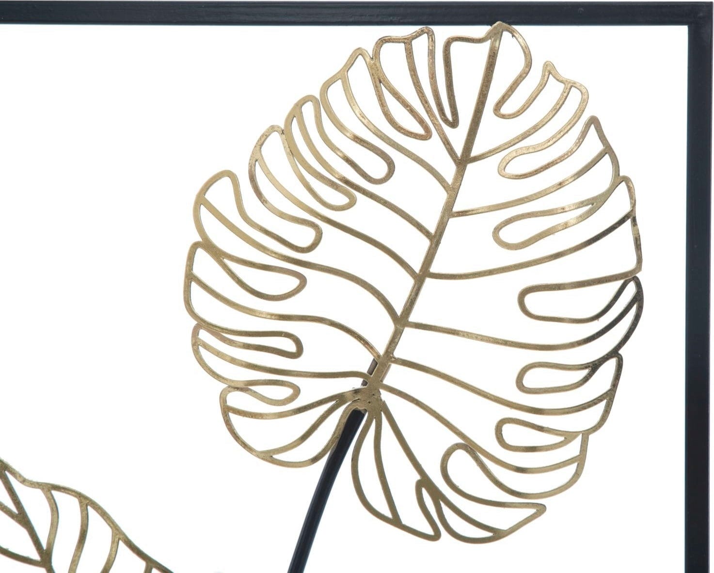 Verwandle deine Wände in ein exklusives Kunstwerk mit der Wanddekoration Luxy -B- von Mauro Ferretti. Dieses rechteckige Metallpaneel greift den angesagten Trend der 3D-Wandgestaltung auf und verleiht deinem Zuhause eine sofortige Prise Glamour. Das Design besticht durch seine filigranen, goldfarbenen Monstera-Blätter, die wie zarte Skelettstrukturen wirken und eine überraschende Leichtigkeit ausstrahlen.