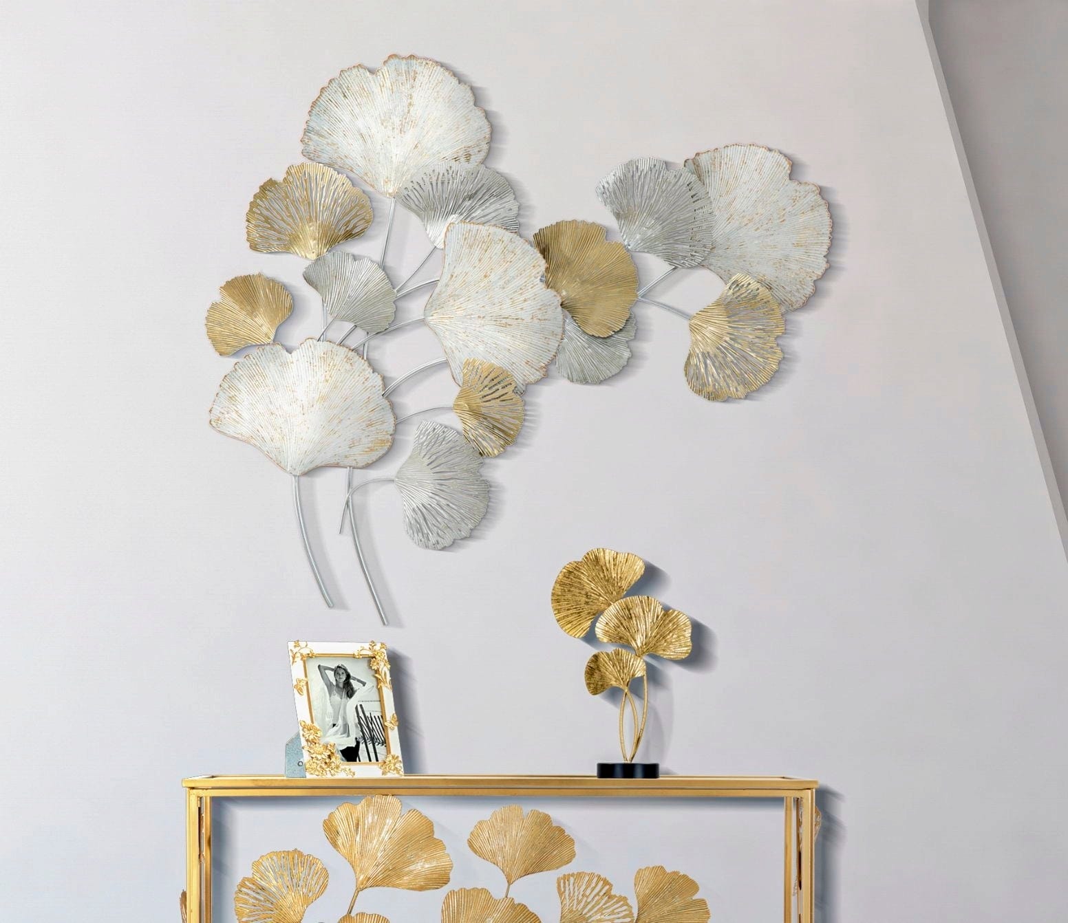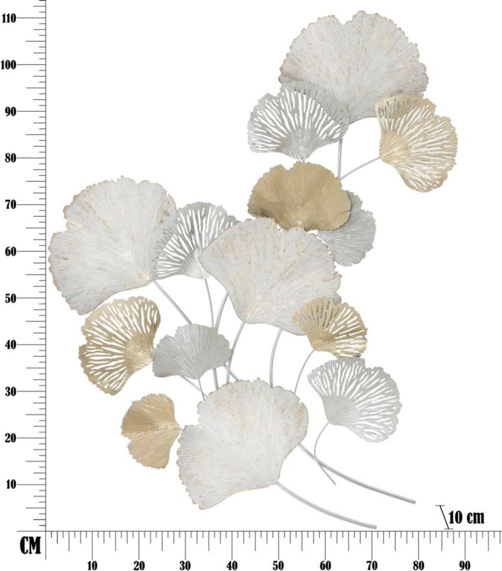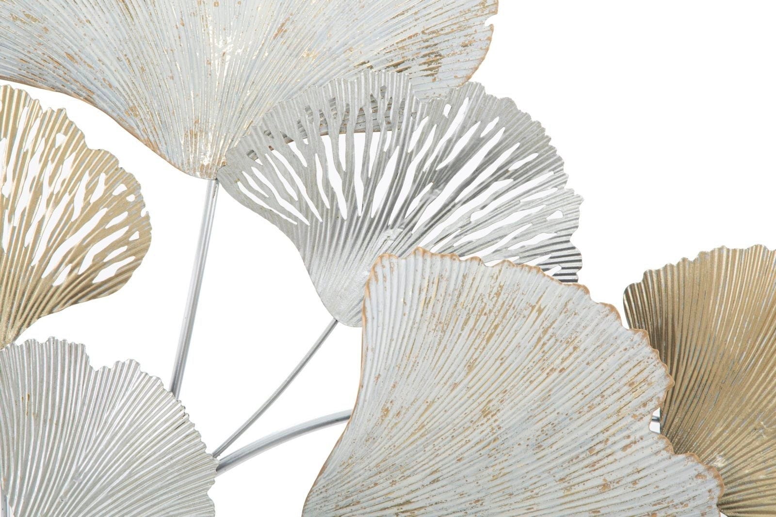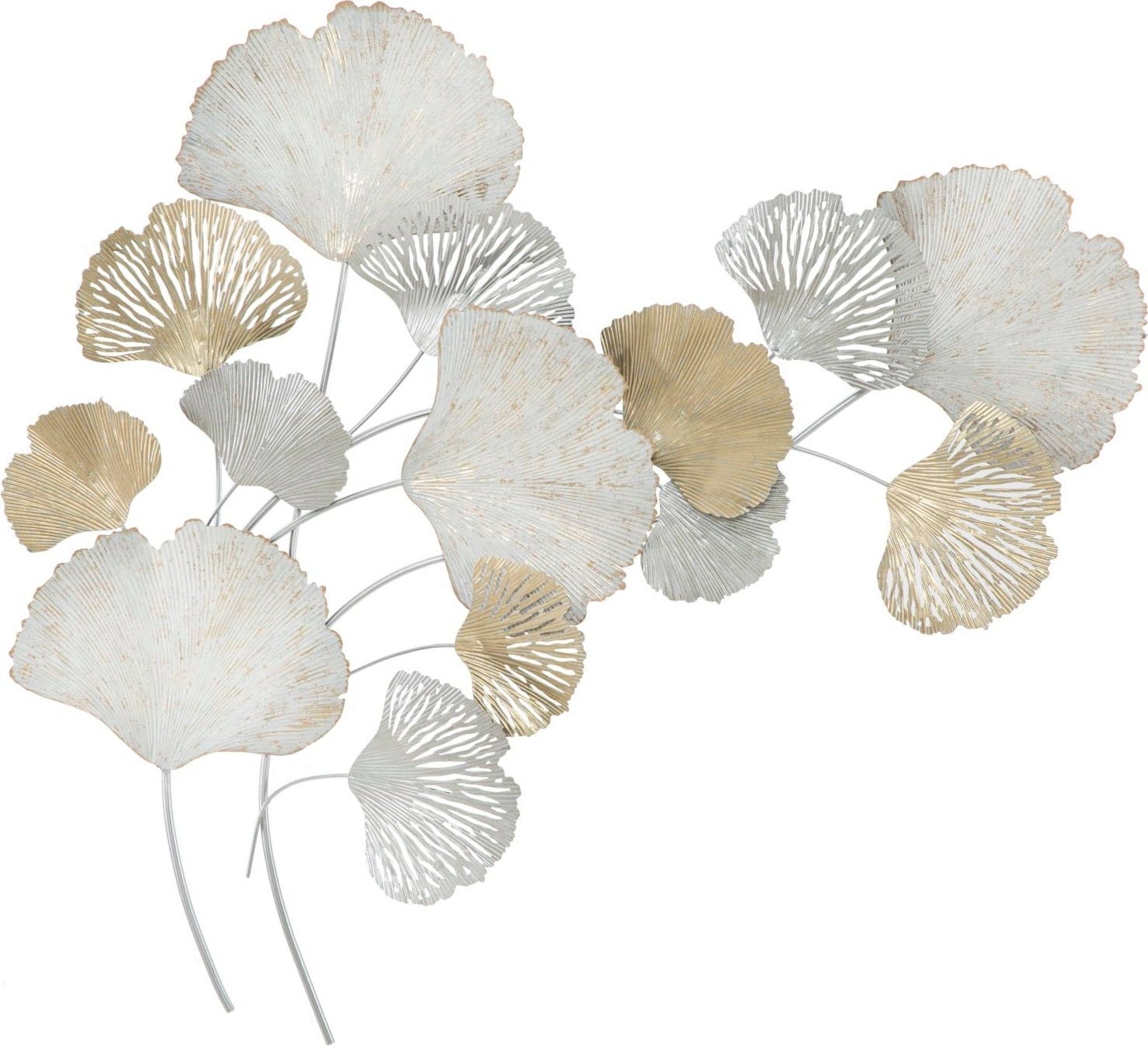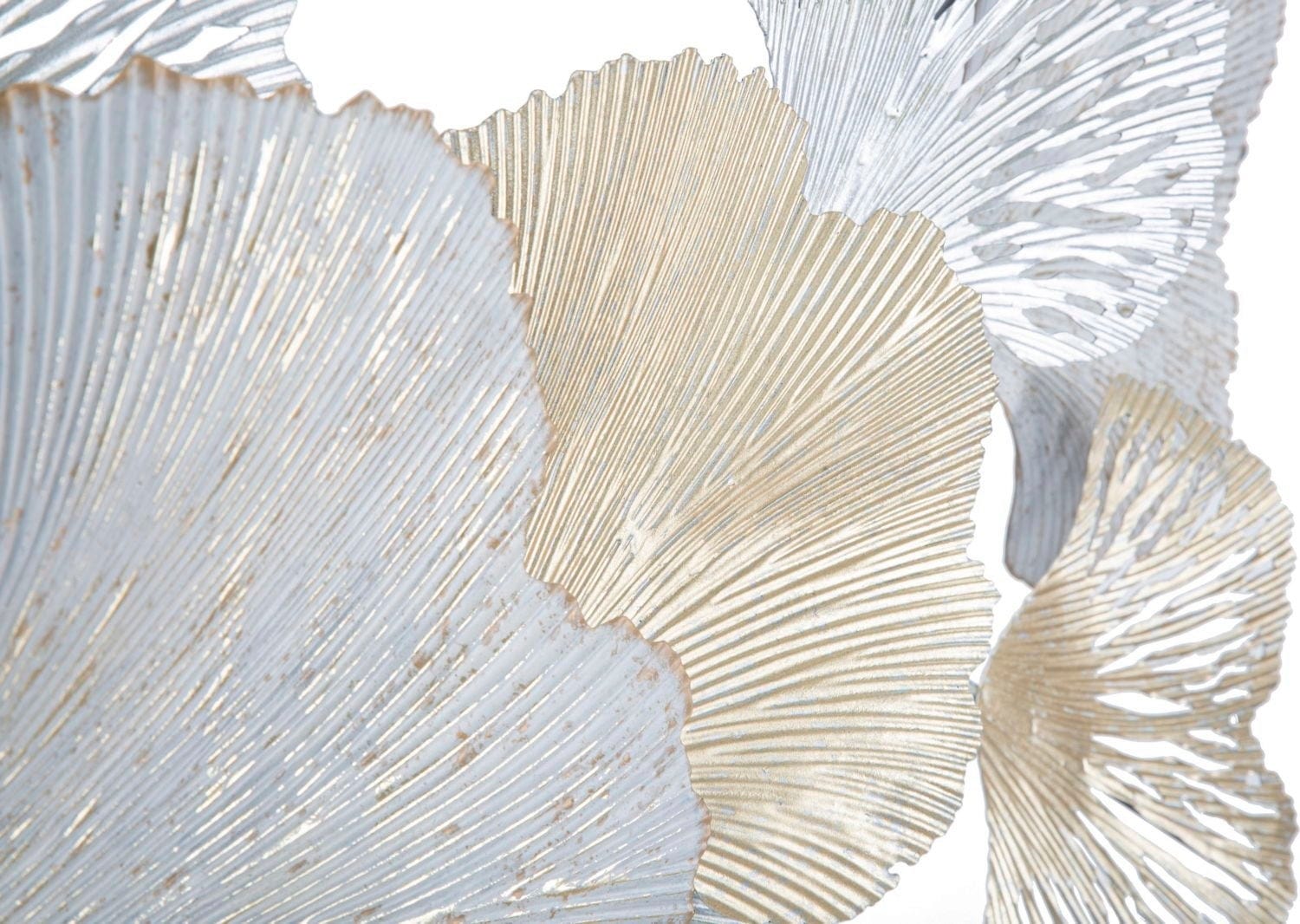 Setze ein glanzvolles Statement mit der Wanddekoration Silvy von Mauro Ferretti. Dieses großformatige 3D-Metallpaneel bringt den aktuellen Trend der plastischen Wandgestaltung in einer besonders eleganten Form in dein Zuhause. Das Design besticht durch ein Meer aus fächerartigen Ginkgo-Blättern, die in einem harmonischen Wechselspiel aus hellem Weiß und luxuriösen Goldtönen erstrahlen.
