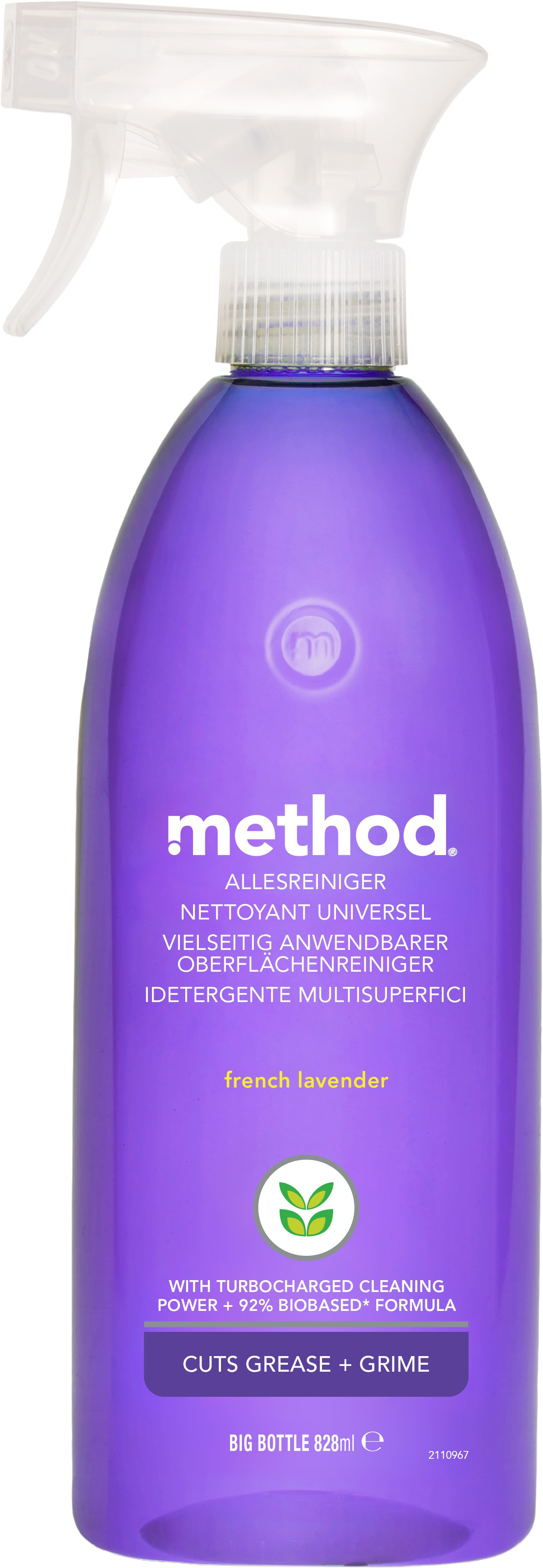 Der Universalreiniger von method reinigt auf Basis von biologisch abbaubaren Inhaltsstoffen.