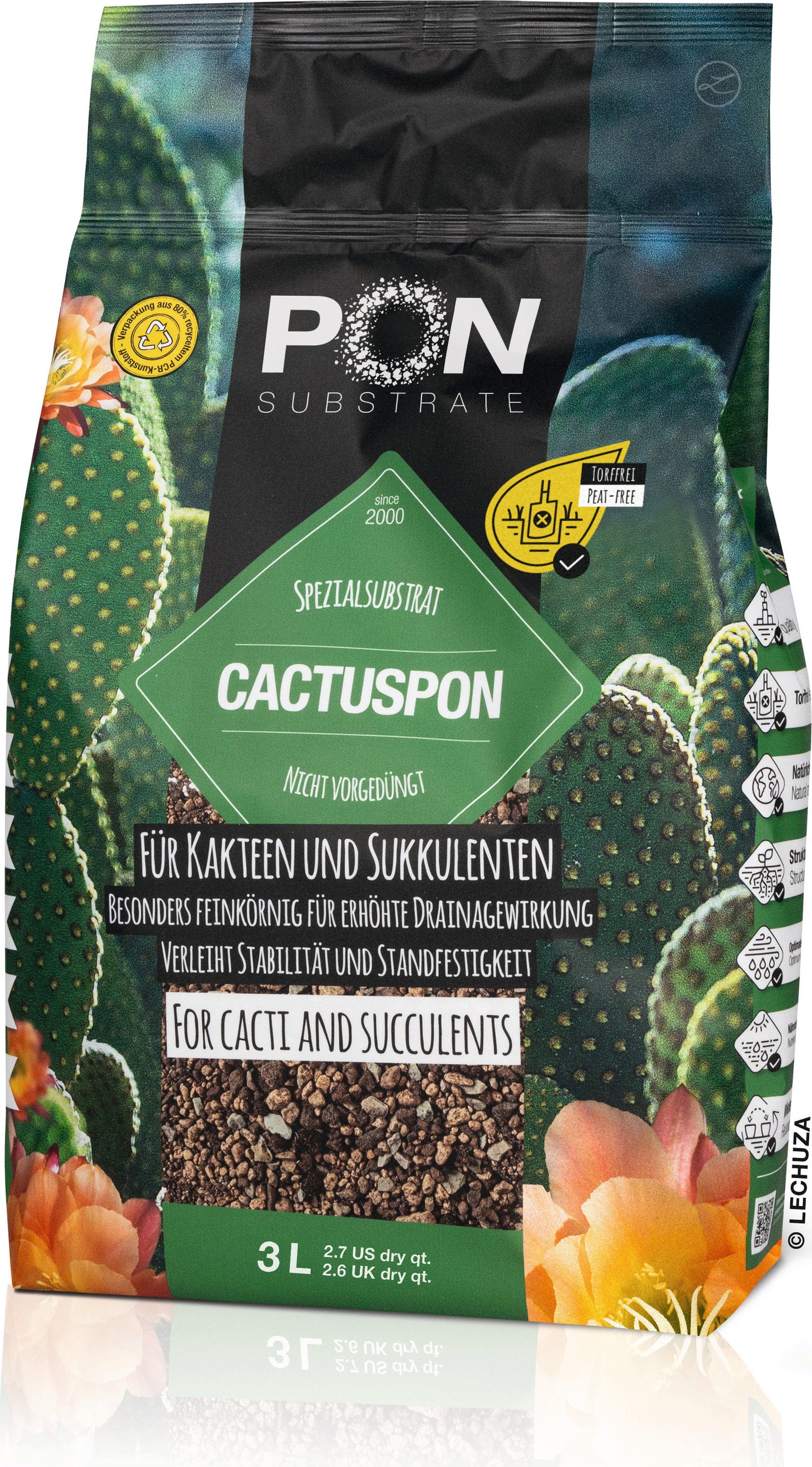 Kakteen und Sukkulenten lieben es trocken – Staunässe ist ihr gefährlichster Feind. Mit Cactuspon schaffst du die idealen Bedingungen wie in ihrer natürlichen Heimat. Das rein mineralische Spezialsubstrat aus feinem Bims, Lava und Zeolith lässt überschüssiges Wasser sofort abfließen und sorgt für eine exzellente Wurzelbelüftung. Da es bewusst nicht vorgedüngt ist, hast du die volle Kontrolle über die Nährstoffzufuhr deiner Pflanzen.