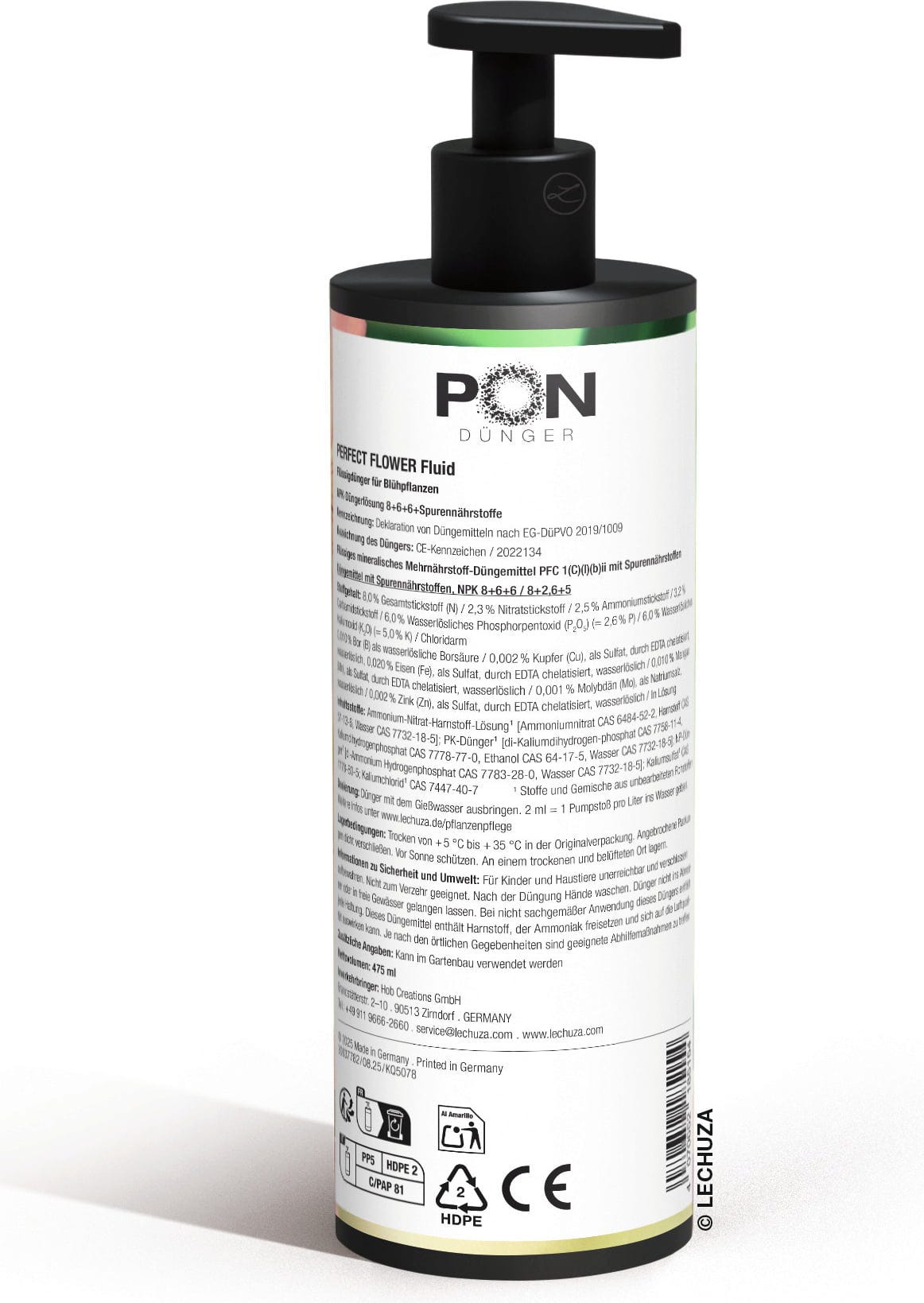 • Dosierung: 1 Pumpstroß pro Liter Gießwasser.