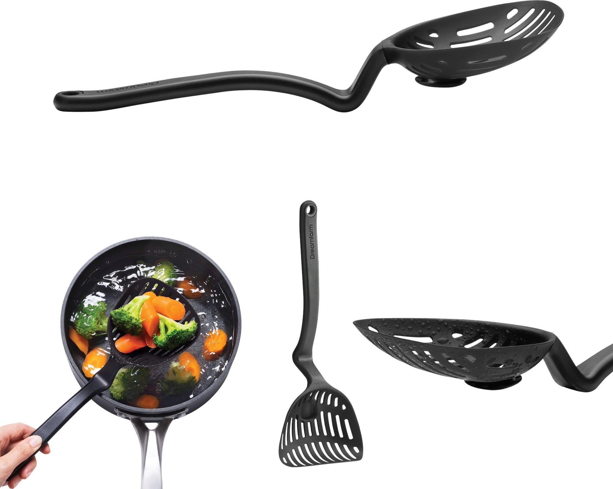 Ab sofort gehören unschöne Pfützen auf deiner Arbeitsplatte der Vergangenheit an, wenn du Pasta, Gemüse oder Gnocchi aus dem Topf hebst! Der Schöpflöffel Lestrain von Dreamfarm ist eine clevere Kombination aus großzügiger Siebschaufel und Kochlöffel, die mit einer integrierten Tropfschale ausgestattet ist, um überschüssige Flüssigkeit sicher aufzufangen.