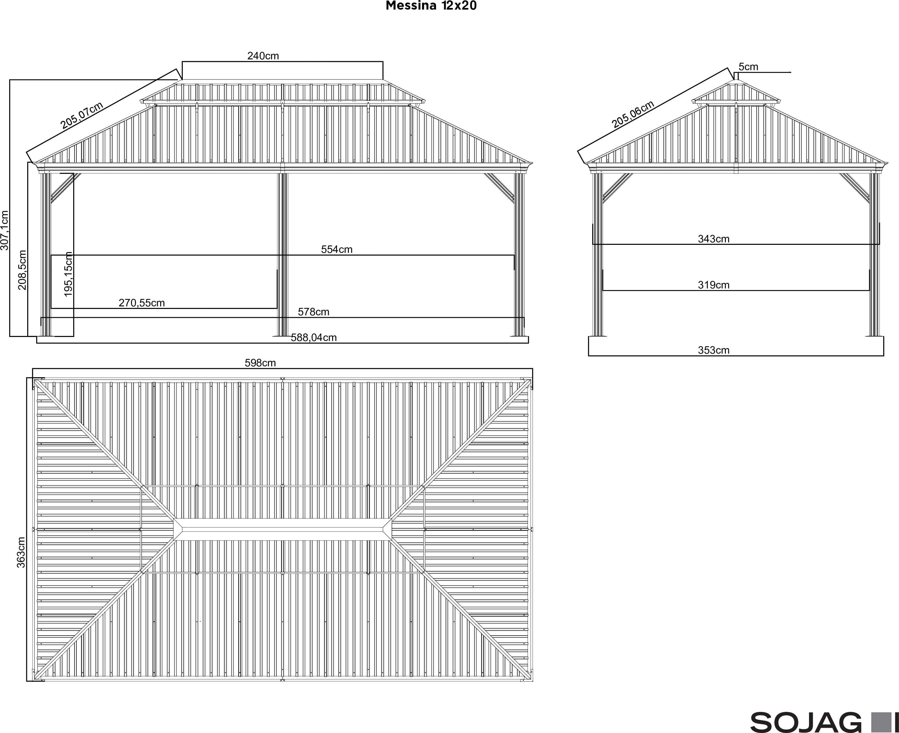 Sojag Pavillon Messina 12x20 / 6 x 3,6 m, Anthrazit