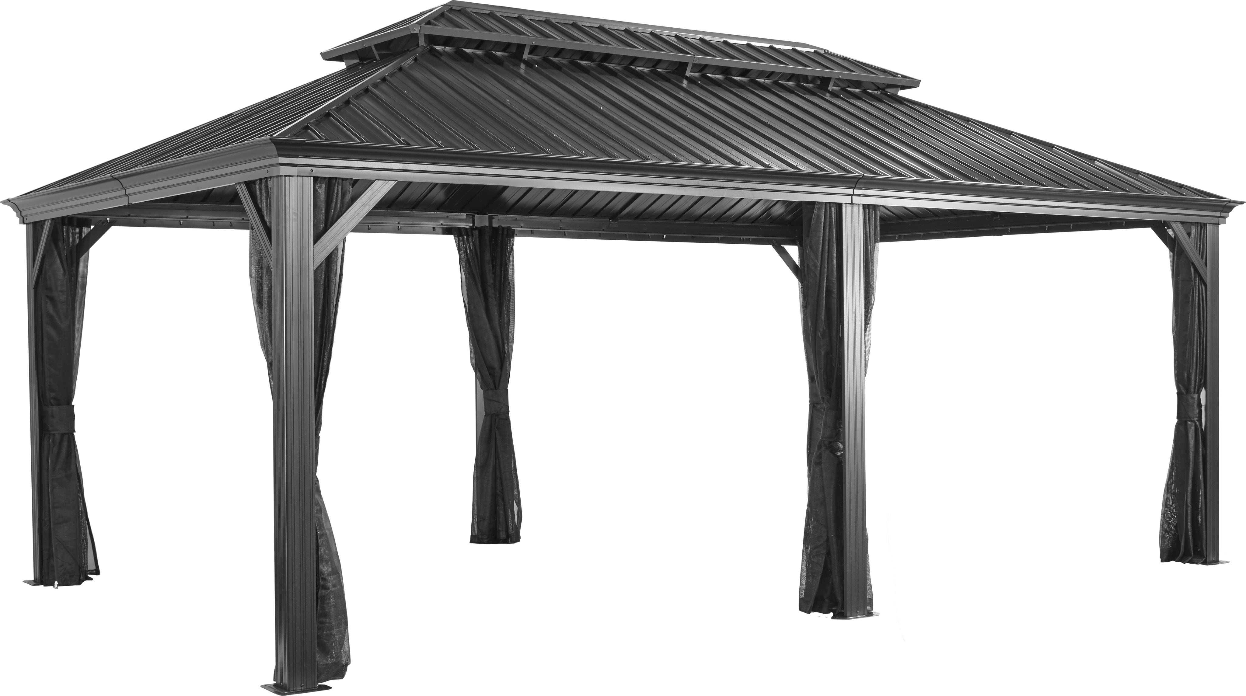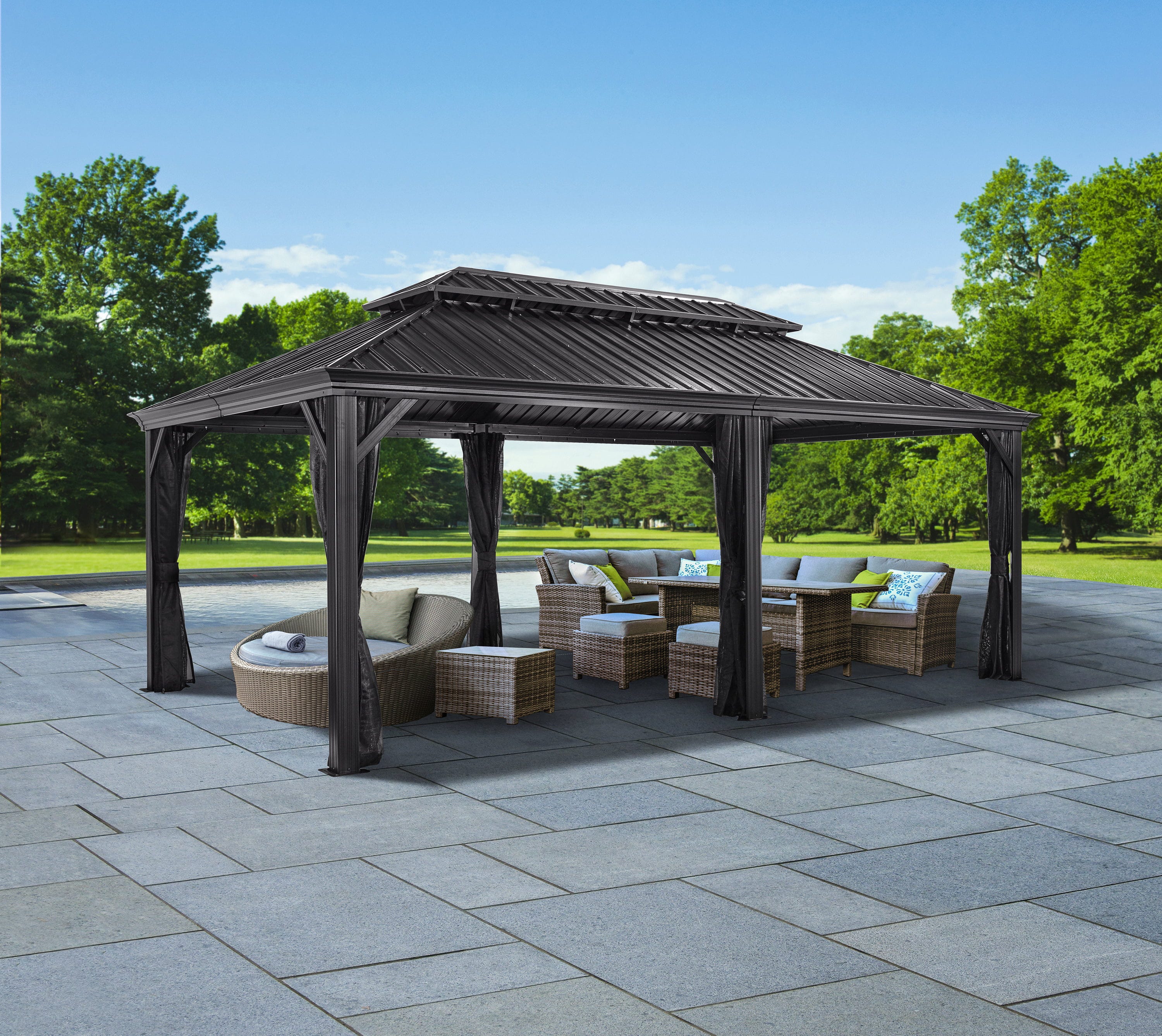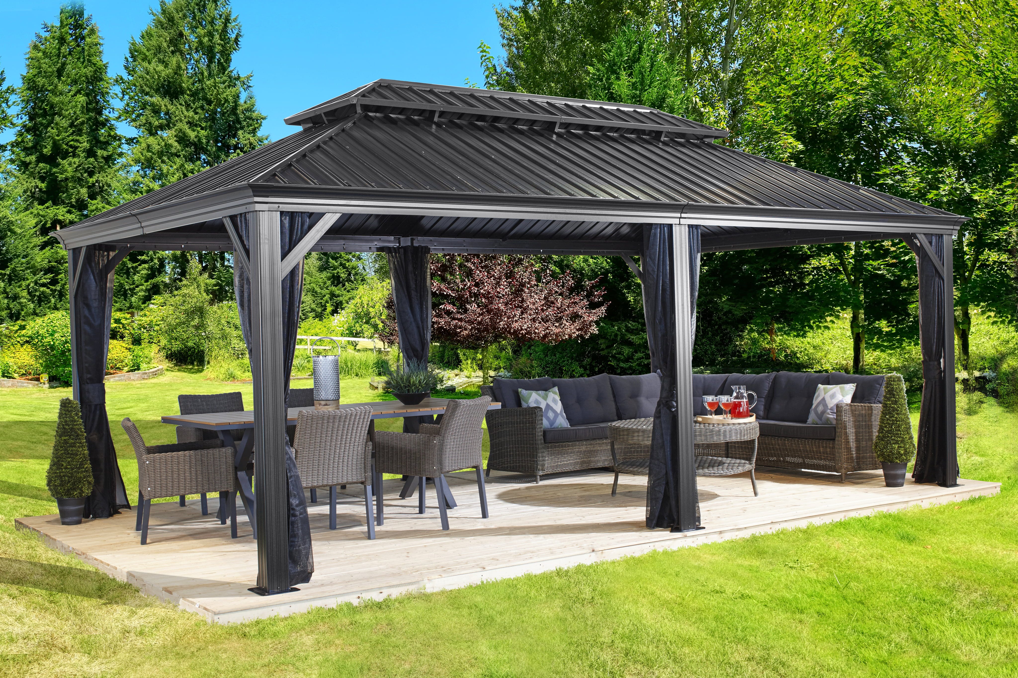 Verwandle deinen Außenbereich mit dem imposanten Pavillon Messina von Sojag in einen luxuriösen Rückzugsort für jede Wetterlage.
