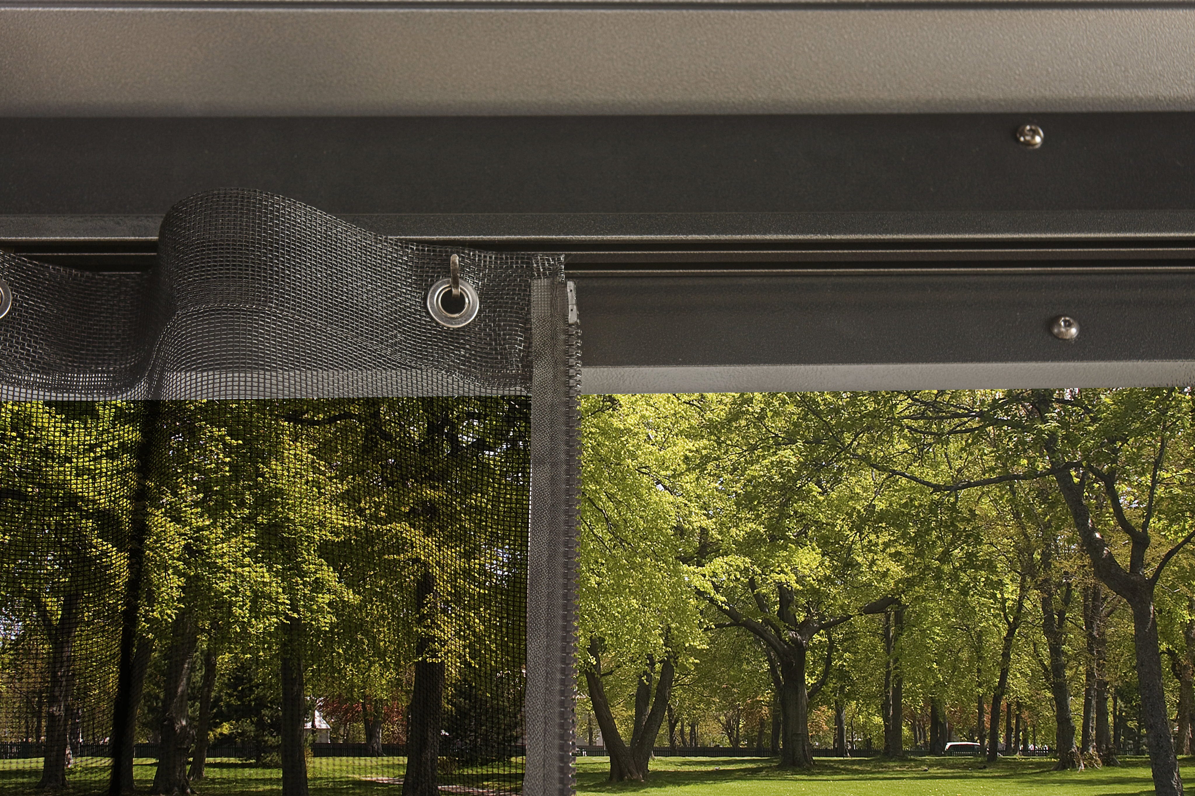 Für maximalen Komfort im Alltag sorgen die clever integrierten Regenrinnen sowie die zweigleisigen Laufschienen. Diese ermöglichen es dir, die bereits enthaltenen Nylon-Moskitonetze und optional erhältliche Vorhänge gleichzeitig zu nutzen. Der Messina ist speziell für den ganzjährigen Betrieb entwickelt und mit witterungsbeständigen Edelstahlschrauben ausgestattet.