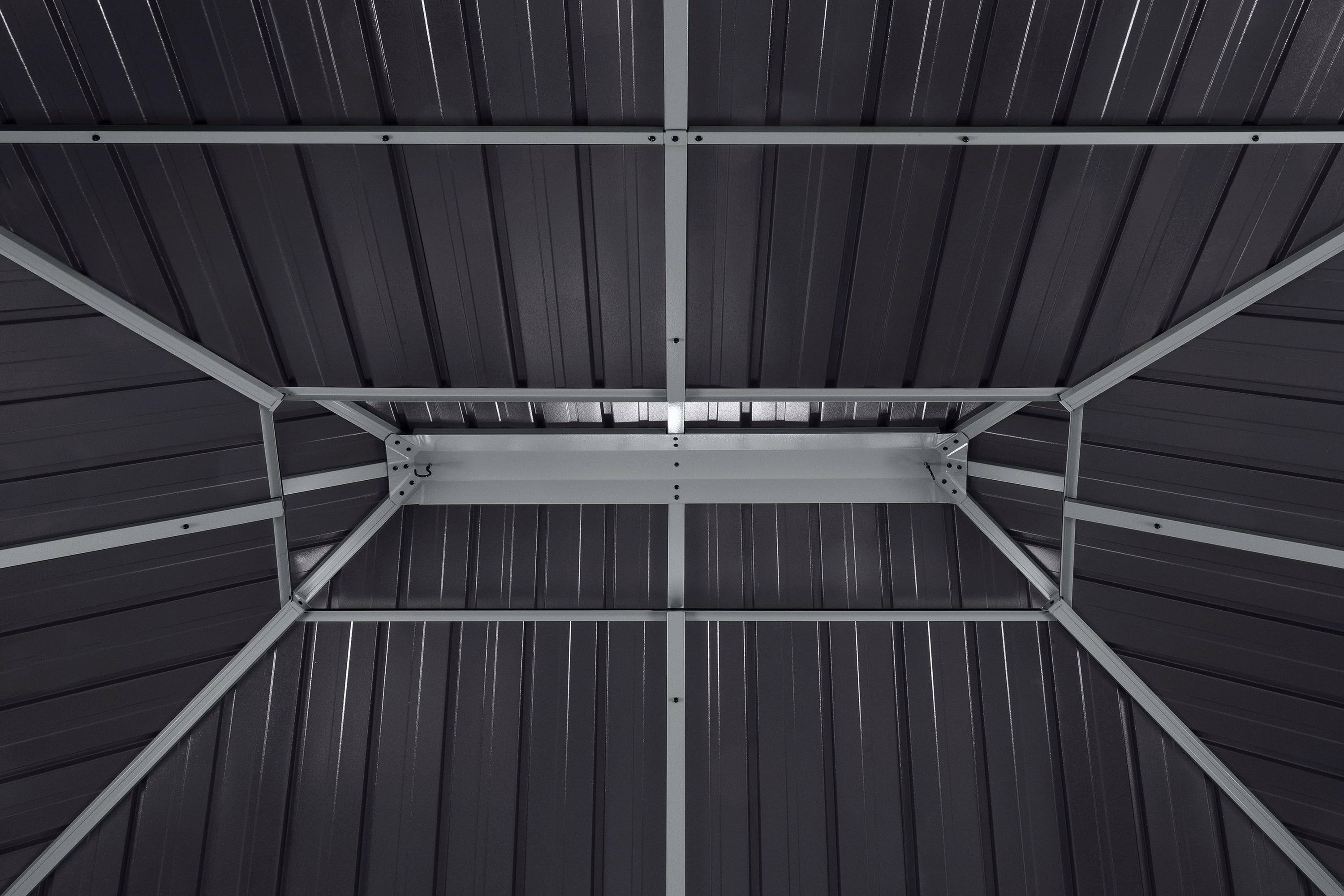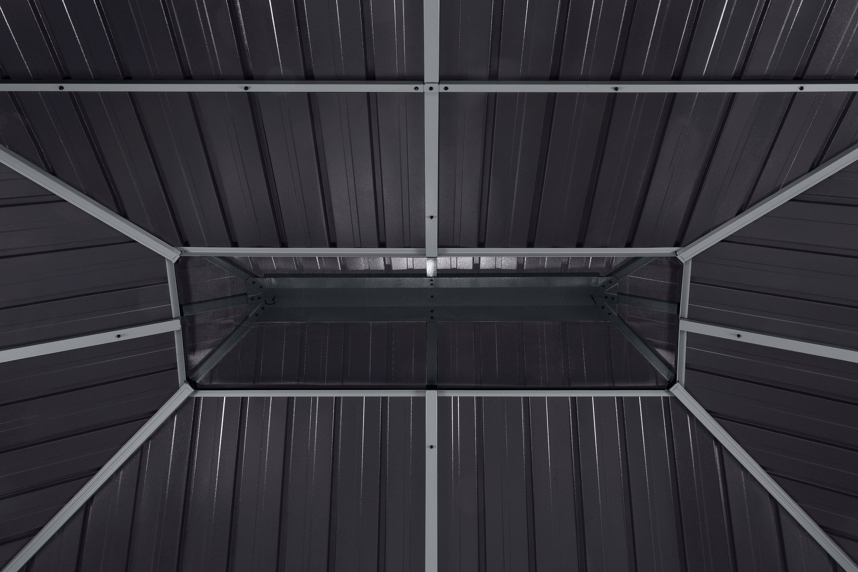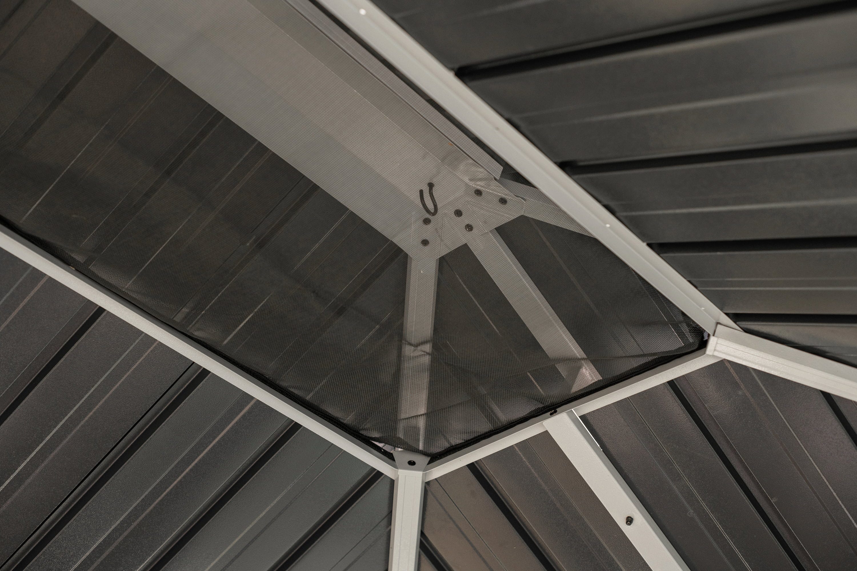Die hochwertige Konstruktion aus pulverbeschichtetem Aluminium mit einer erstklassigen Interpon-Beschichtung trägt ein robustes Doppeldach aus verzinktem Stahlblech. Dieses sorgt dank integrierter Belüftungsvorrichtung und 100 % UV-Schutz stets für ein angenehmes Klima. Ob als windgeschützter Rückzugsort oder luftige Gartenlaube – der Olan passt sich flexibel deinen Wünschen an und wertet dein heimisches Grün optisch wie funktional auf.