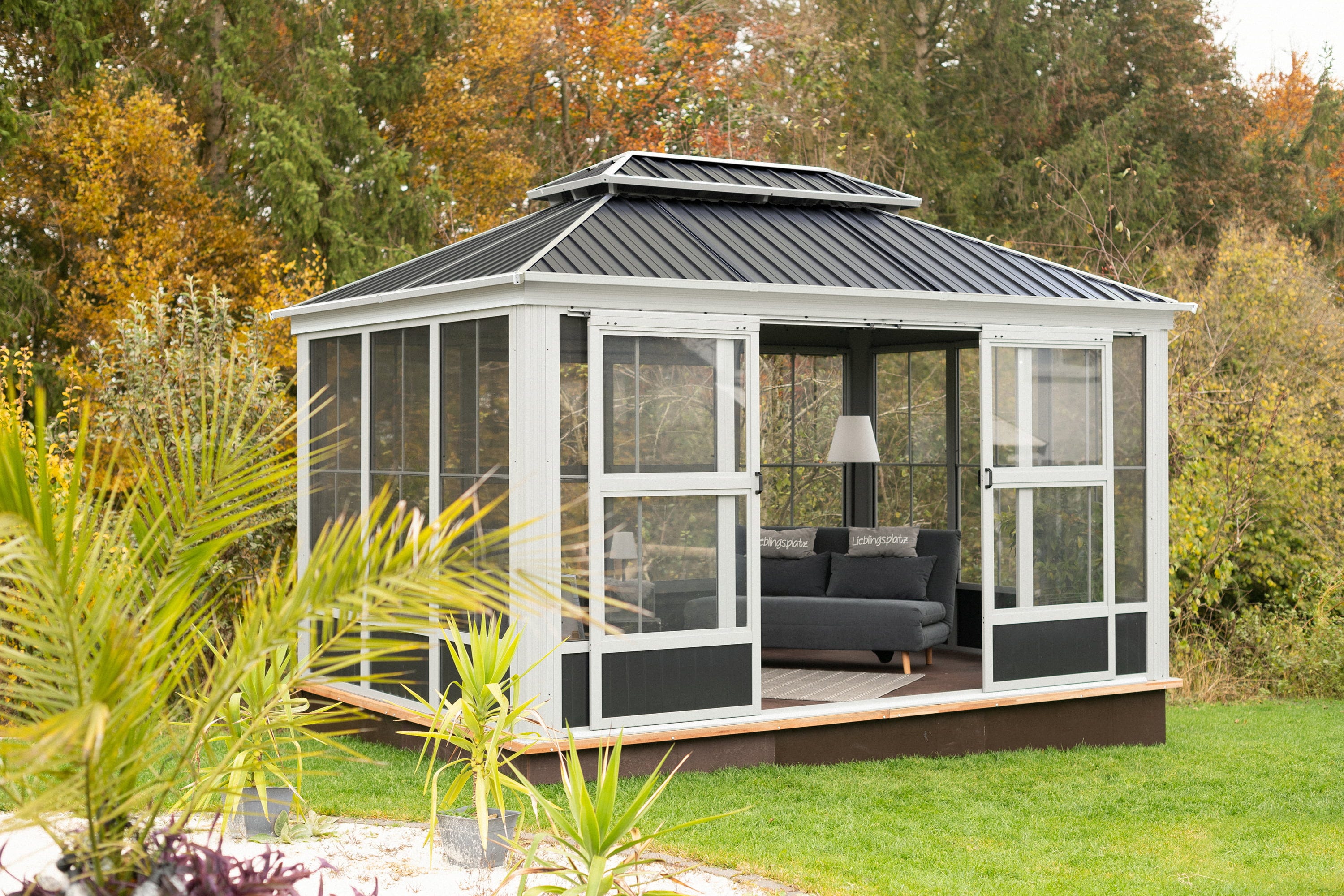 Erschaffe dir mit dem Sojag Olan eine exklusive Verbindung aus klassischem Pavillon und funktionalem Kaltwintergarten.