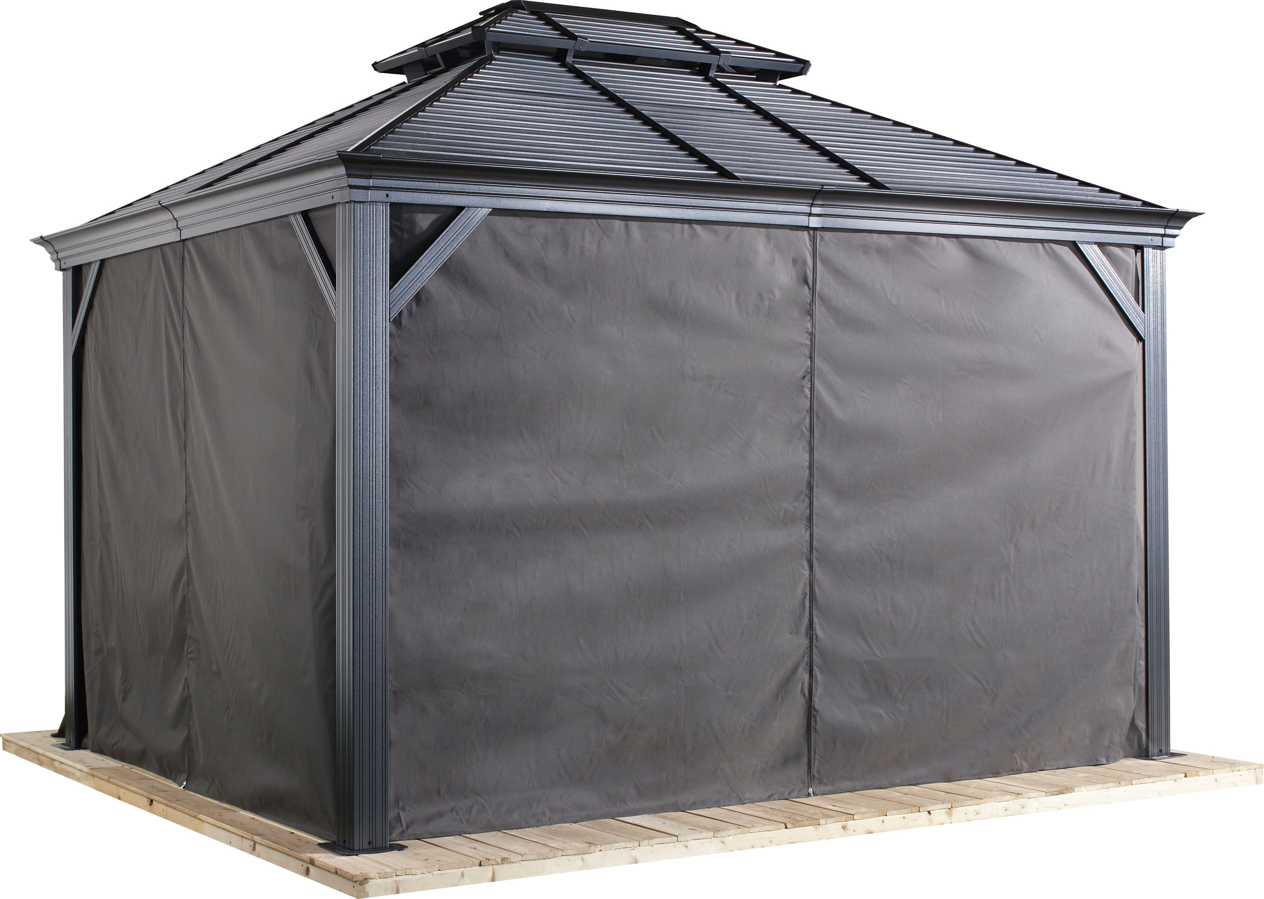 Mit diesem passgenauen Vorhang-Set in elegantem Dunkelgrau verwandelst du deinen Pavillon Mykonos oder Moreno 10x14 in einen geschützten Rückzugsort.