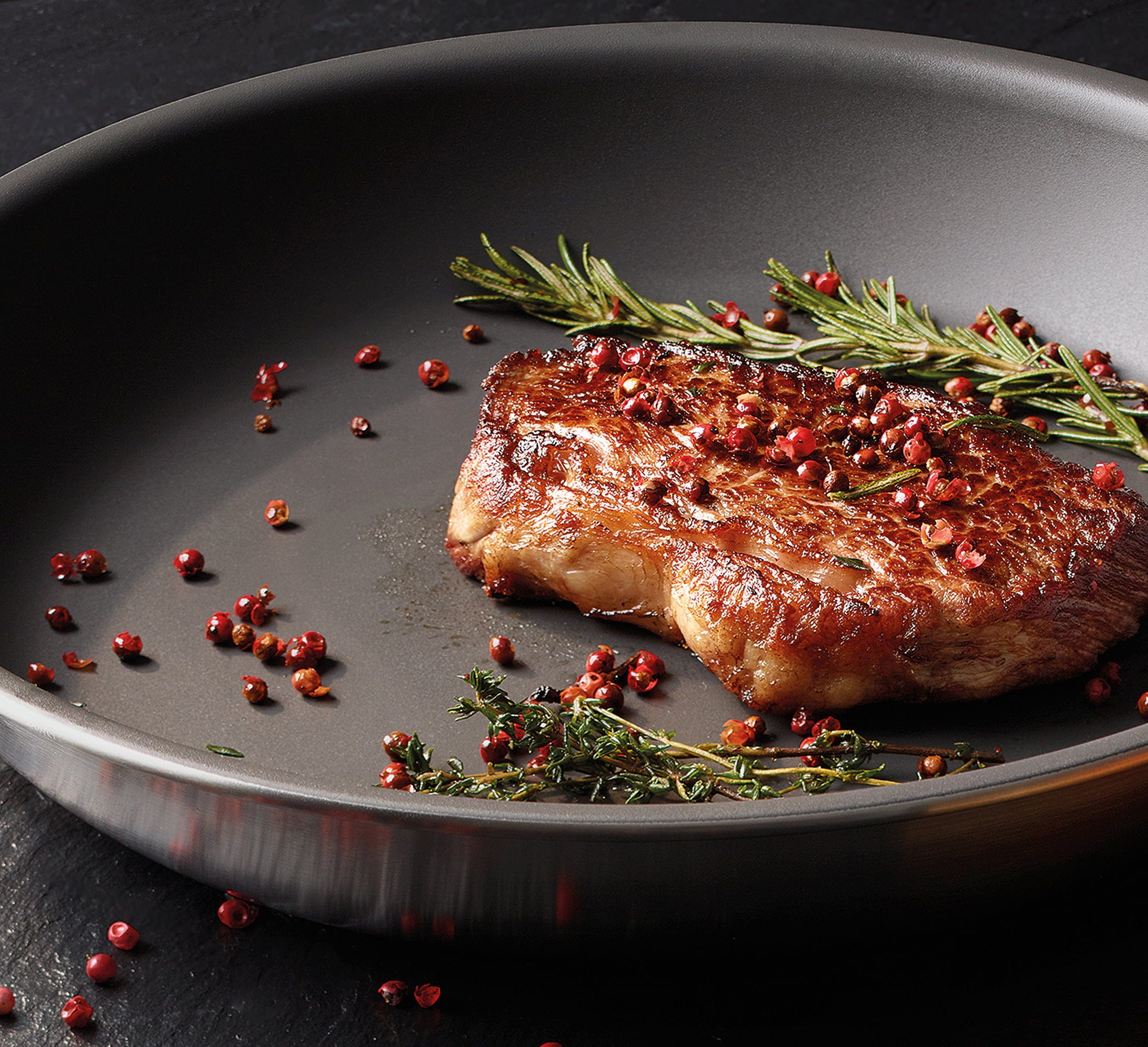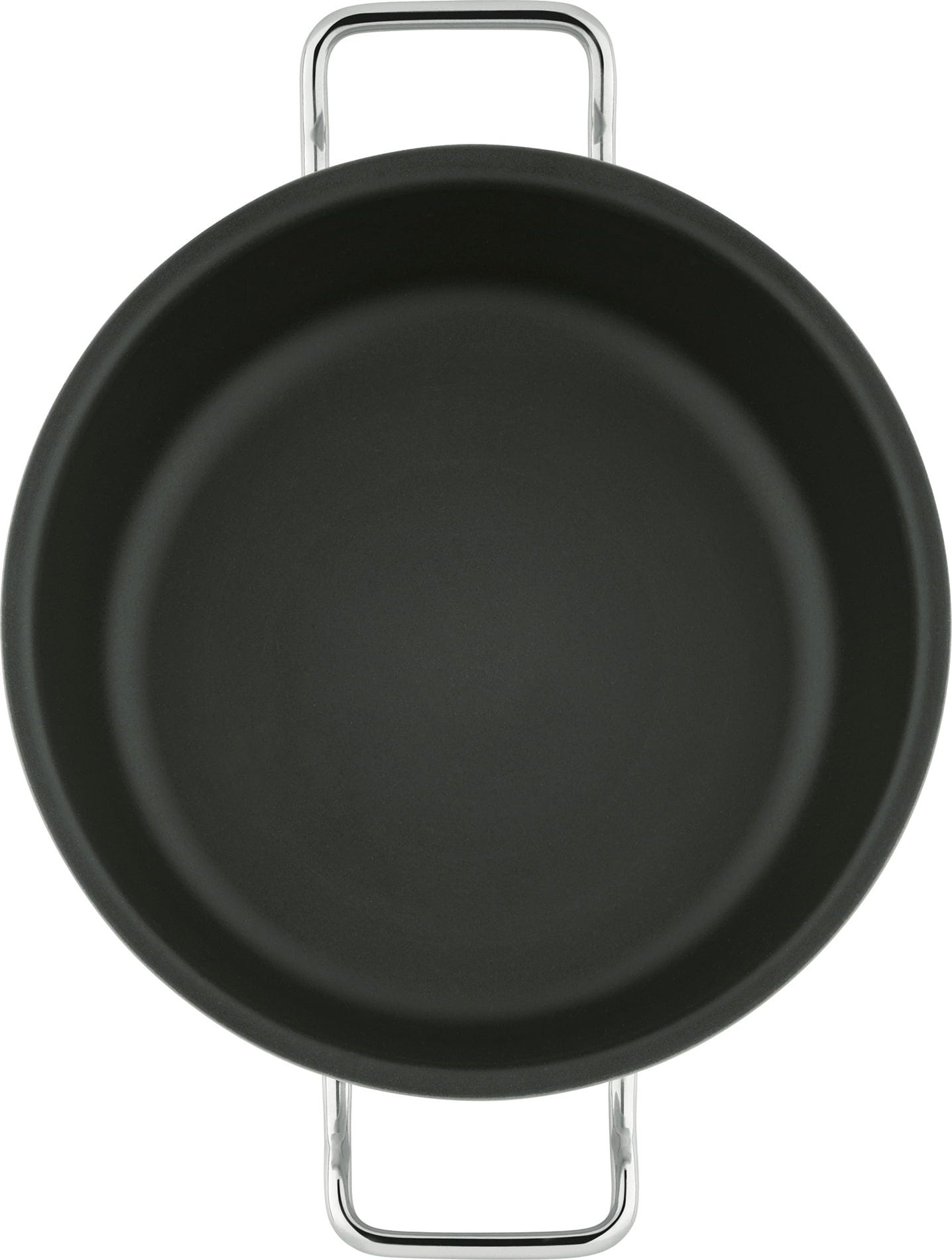 - 5-Lagen-Mehrschichtmaterial: Garantiert eine optimale Wärmeleitung bis in den hohen Rand der Pfanne