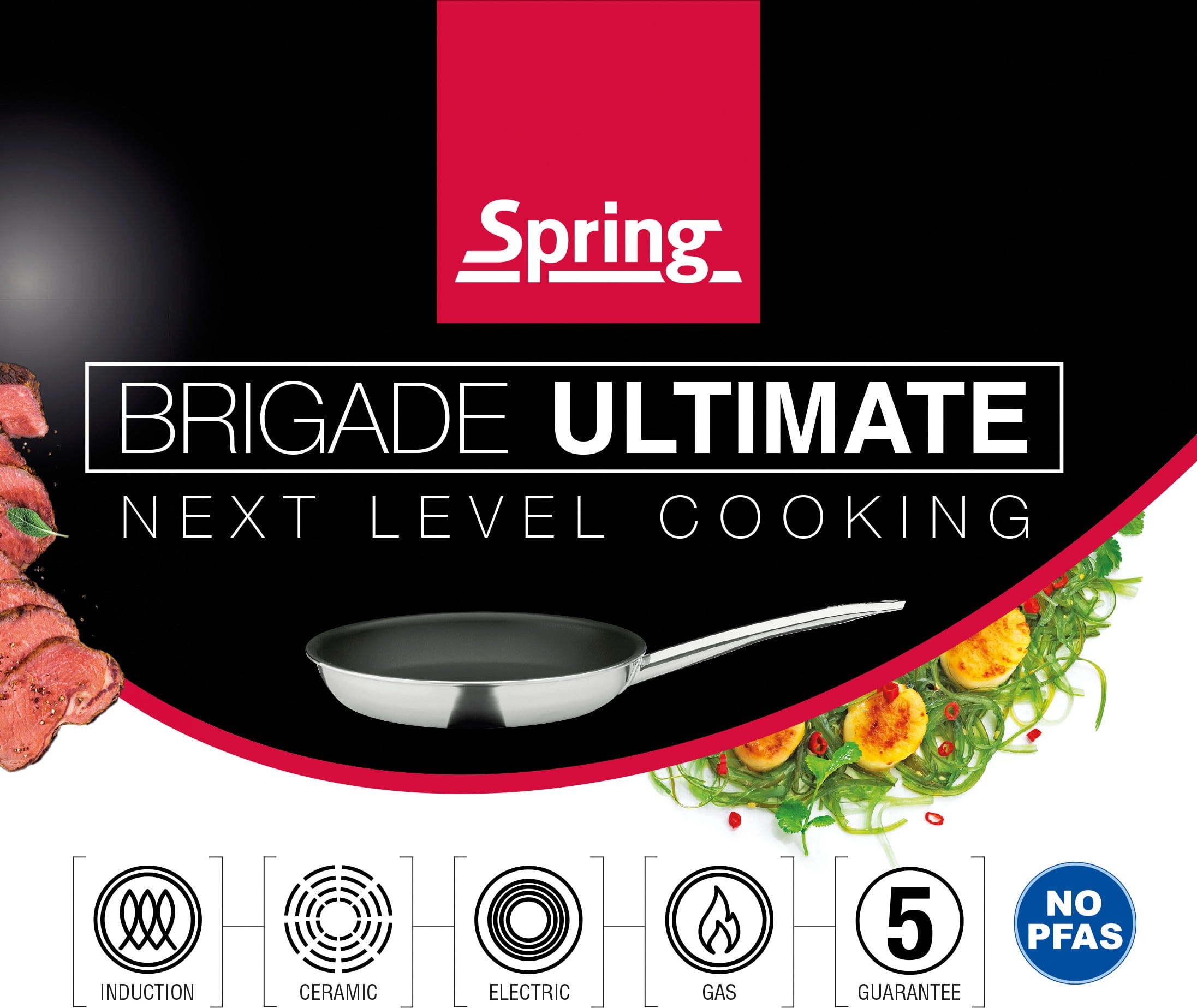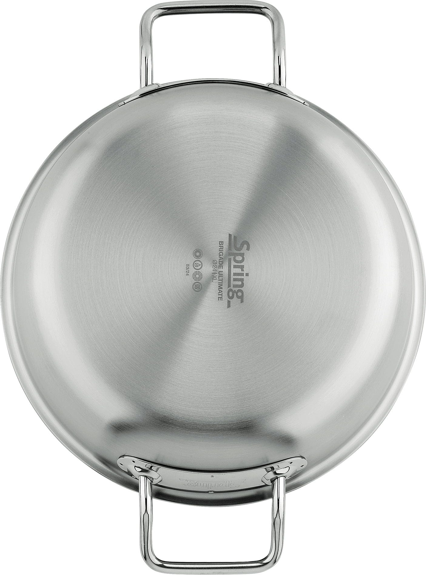 Mit der Brigade Ultimate Servierpfanne von Spring bringst du deine Kochkünste auf ein völlig neues Level! Das Geheimnis ihrer herausragenden Performance liegt im bewährten 5-Lagen-Mehrschichtmaterial: Ein dreifacher Aluminiumkern sorgt dafür, dass die Hitze blitzschnell und absolut gleichmäßig verteilt wird, während die robuste Edelstahloberfläche mit einem natürlichen Antihaft-Effekt überzeugt.